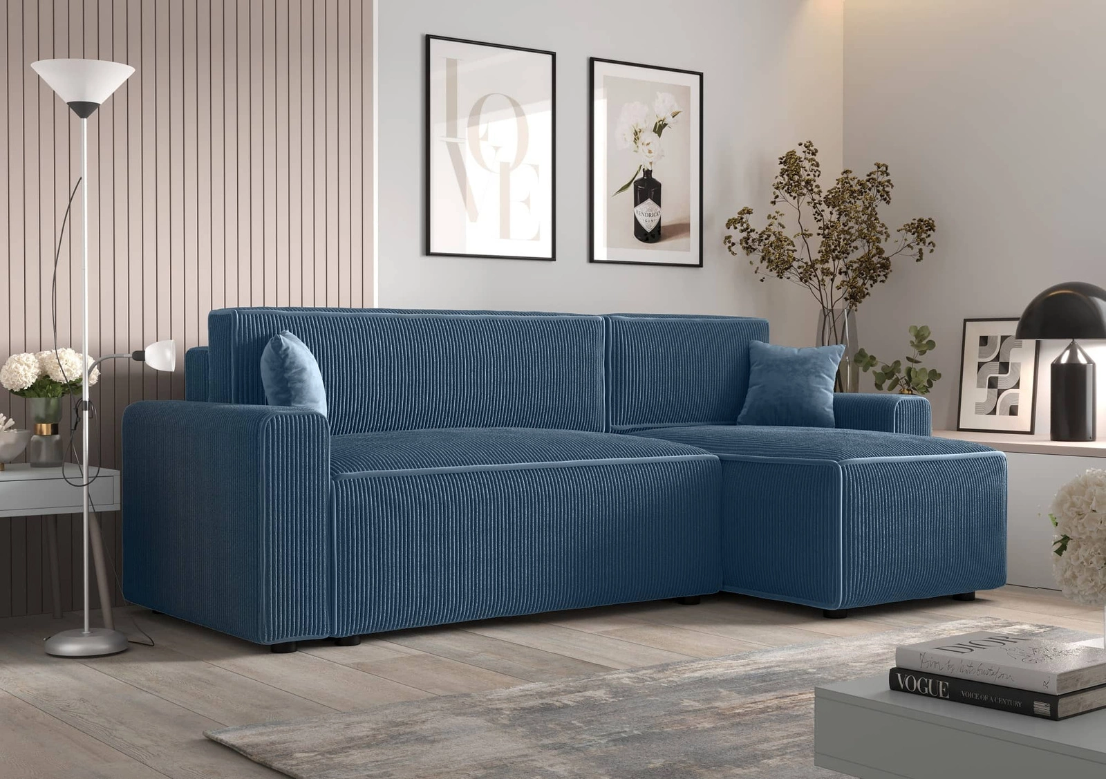 Rohová jednotka s funkcí spánku Brandon Bis je jednoduchý kus nábytku s moderním designem, který dokonale zapadne do jakéhokoli uspořádání. Pohovka byla celá potažena látkou typu velur Poso 05. Trojrozměrné manšestrová tkanina s výrazným a silným žebrováním dodává pohovce zvláštní charakter a činí ji jedinečně krásnou. Tkanina je velmi měkká a přesto pevná a robustní. Čalounická tkanina Poso je odolnost proti oděru, a také snadno se udržuje v čistotě. Díky tomu bude rozkládací rohová pohovka Brandon Bis vypadat esteticky a elegantně po dlouhou dobu. Rohová sedací souprava s funkcí každodenního spaní je vyrobena z vysoce kvalitních materiálů, které jsou odolné vůči vnějším vlivům, jako je čalounění nábytku a různé druhy nárazů.