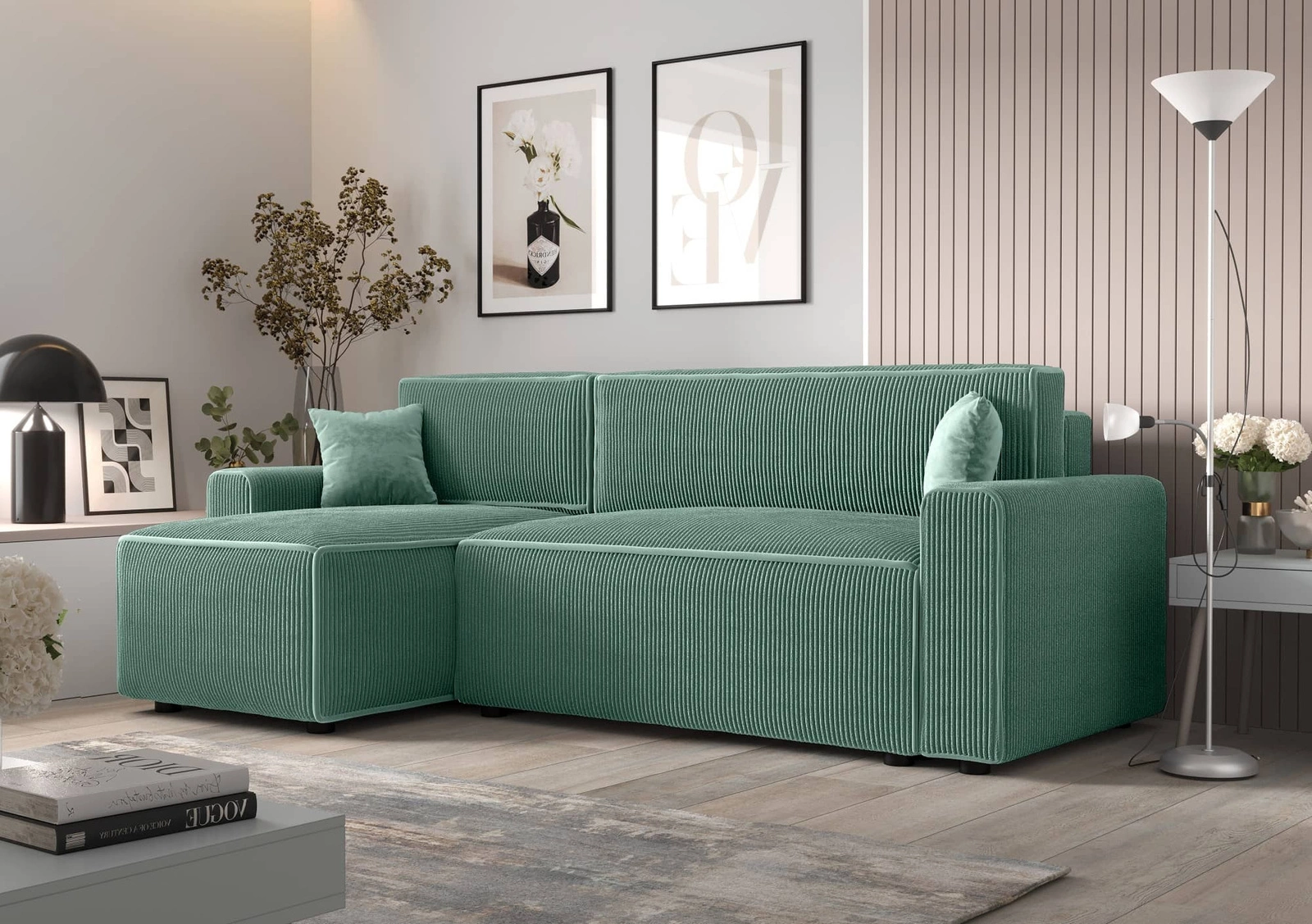 Rohová jednotka s funkcí spánku Brandon Bis je jednoduchý kus nábytku s moderním designem, který dokonale zapadne do jakéhokoli uspořádání. Pohovka byla celá potažena látkou typu velur Poso 26. Trojrozměrné manšestrová tkanina s výrazným a silným žebrováním dodává pohovce zvláštní charakter a činí ji jedinečně krásnou. Tkanina je velmi měkká a přesto pevná a robustní. Čalounická tkanina Poso je odolnost proti oděru, a také snadno se udržuje v čistotě. Díky tomu bude rozkládací rohová pohovka Brandon Bis vypadat esteticky a elegantně po dlouhou dobu. Rohová sedací souprava s funkcí každodenního spaní je vyrobena z vysoce kvalitních materiálů, které jsou odolné vůči vnějším vlivům, jako je čalounění nábytku a různé druhy nárazů.