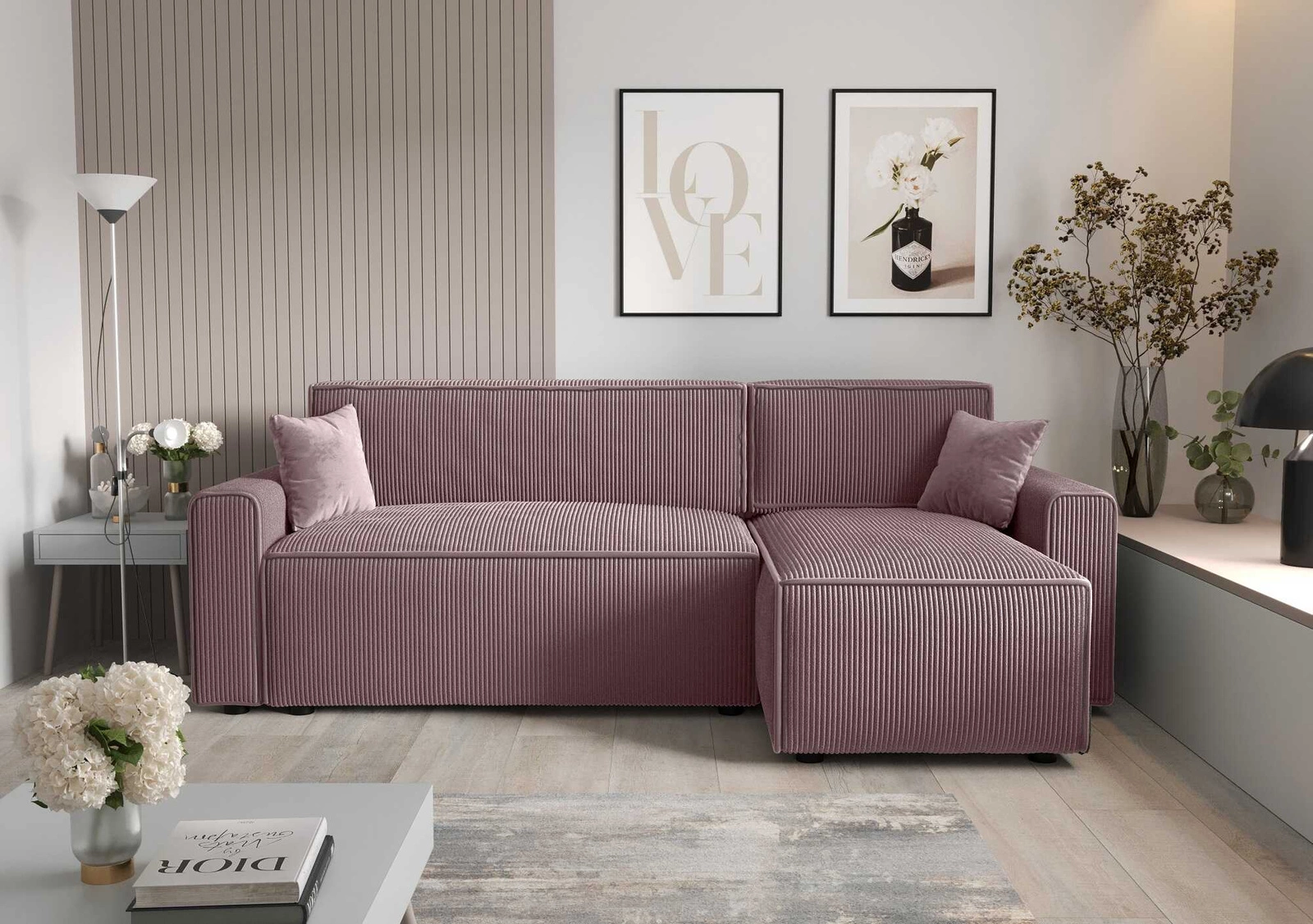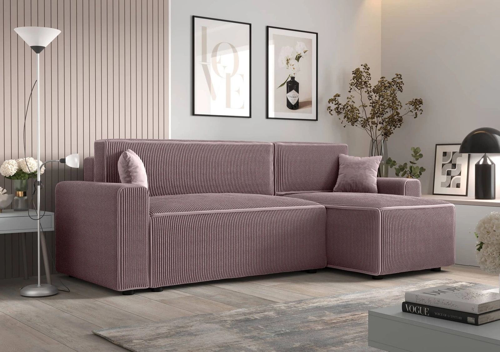 Rohová jednotka s funkcí spánku Brandon Bis je jednoduchý kus nábytku s moderním designem, který dokonale zapadne do jakéhokoli uspořádání. Pohovka byla celá potažena látkou typu velur Poso 27. Trojrozměrné manšestrová tkanina s výrazným a silným žebrováním dodává pohovce zvláštní charakter a činí ji jedinečně krásnou. Tkanina je velmi měkká a přesto pevná a robustní. Čalounická tkanina Poso je odolnost proti oděru, a také snadno se udržuje v čistotě. Díky tomu bude rozkládací rohová pohovka Brandon Bis vypadat esteticky a elegantně po dlouhou dobu. Rohová sedací souprava s funkcí každodenního spaní je vyrobena z vysoce kvalitních materiálů, které jsou odolné vůči vnějším vlivům, jako je čalounění nábytku a různé druhy nárazů.