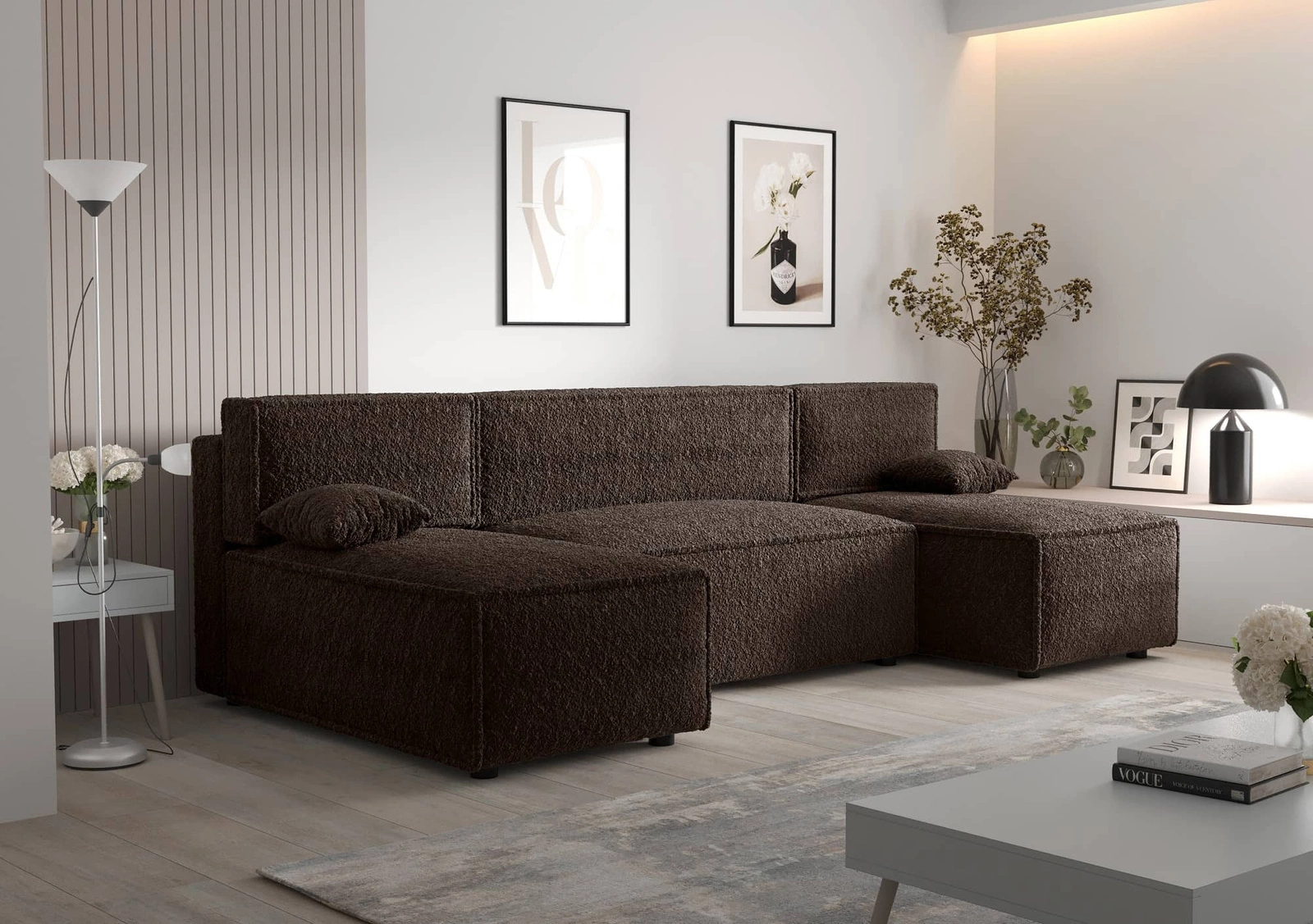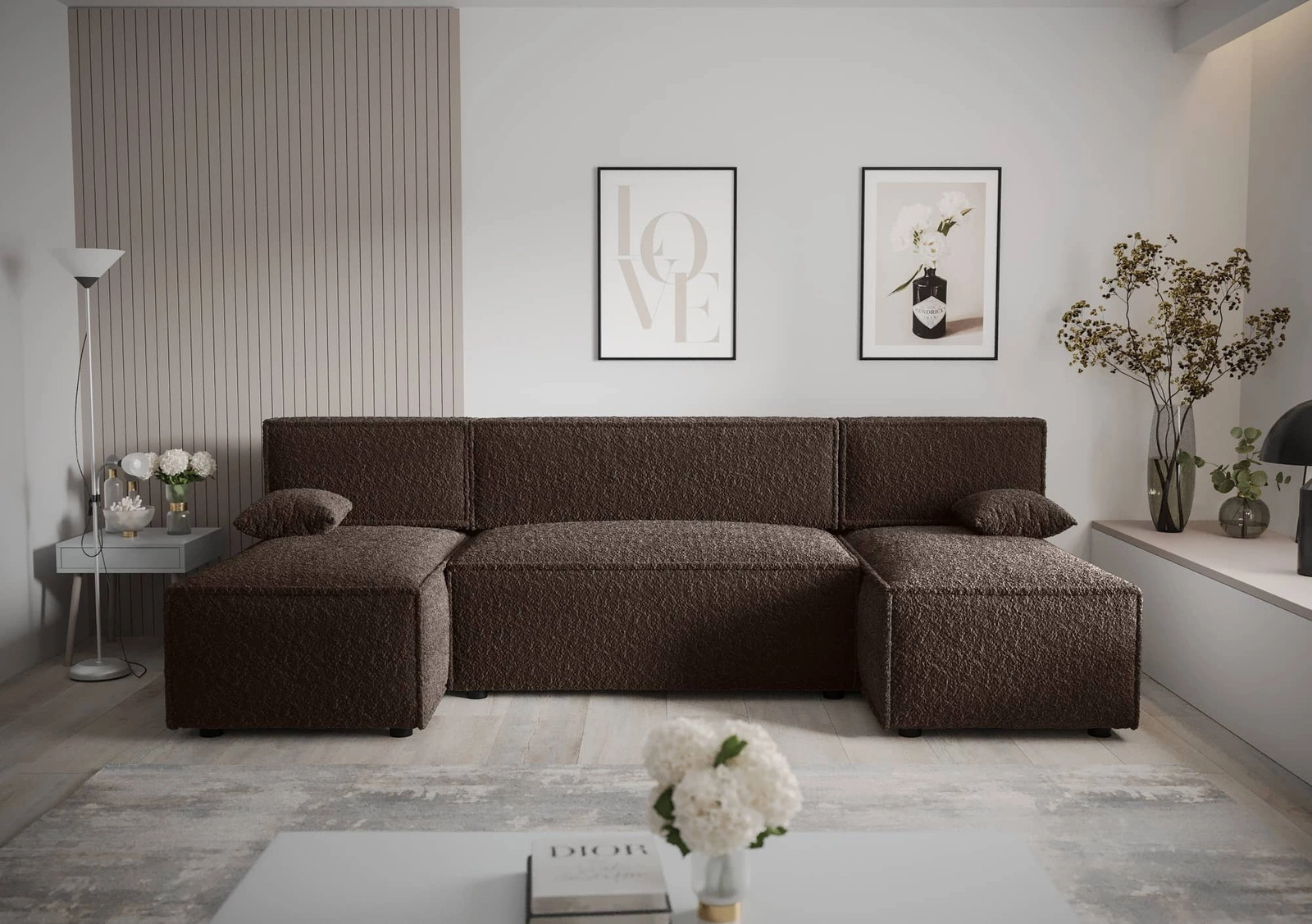 - Rohová sedací souprava Brandon U s funkcí spaní je zajímavě vypadající kus nábytku, který dokonale zapadá do současných trendů interiérového designu. Rohová skříň je vyrobena z látky příjemné na dotek s výrazným smyčkovým povrchem, který dodává skříni jed