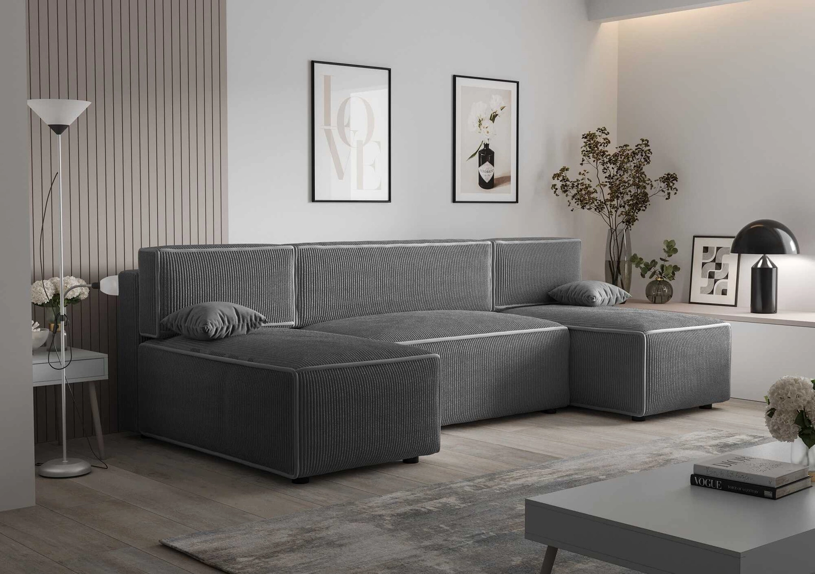 Rohová jednotka s funkcí spaní Brandon U je jednoduchý kus nábytku s moderním designem, který dokonale zapadne do jakéhokoli uspořádání. Pohovka byla celá potažena látkou typu velur Poso 60. Trojrozměrné manšestrová tkanina s výrazným a silným žebrováním dodává pohovce zvláštní charakter a činí ji jedinečně krásnou. Tkanina je velmi měkká a přesto pevná a robustní. Čalounická tkanina Poso je odolnost proti oděru, a také snadno se udržuje v čistotě. Díky tomu bude rohová skládací jednotka Brandon U vypadat esteticky a elegantně po dlouhou dobu. Rohová sedací souprava s funkcí každodenního spaní je vyrobena z vysoce kvalitních materiálů, které jsou odolné vůči vnějším vlivům, jako je čalounění nábytku a různé druhy nárazů.