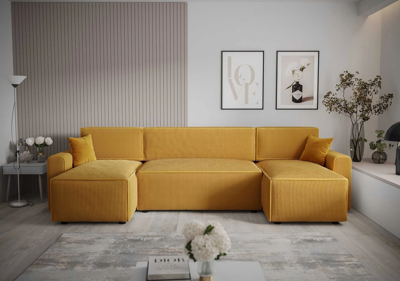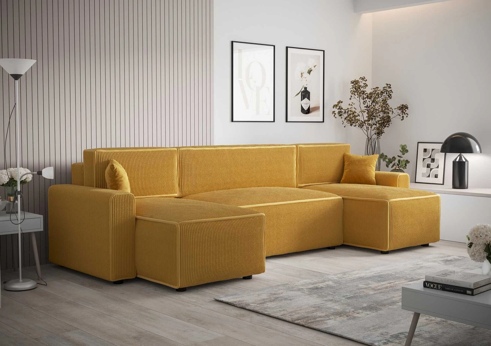 Rohová jednotka s funkcí spaní Brandon U Bis je jednoduchý kus nábytku s moderním designem, který dokonale zapadne do jakéhokoli uspořádání. Pohovka byla celá potažena látkou typu velur Poso 01. Trojrozměrné manšestrová tkanina s výrazným a silným žebrováním dodává pohovce zvláštní charakter a činí ji jedinečně krásnou. Tkanina je velmi měkká a přesto pevná a robustní. Čalounická tkanina Poso je odolnost proti oděru, a také snadno se udržuje v čistotě. Díky tomu bude rozkládací rohová pohovka Brandon U Bis vypadat esteticky a elegantně po dlouhou dobu. Rohová sedací souprava s funkcí každodenního spaní je vyrobena z vysoce kvalitních materiálů, které jsou odolné vůči vnějším vlivům, jako je čalounění nábytku a různé druhy nárazů.