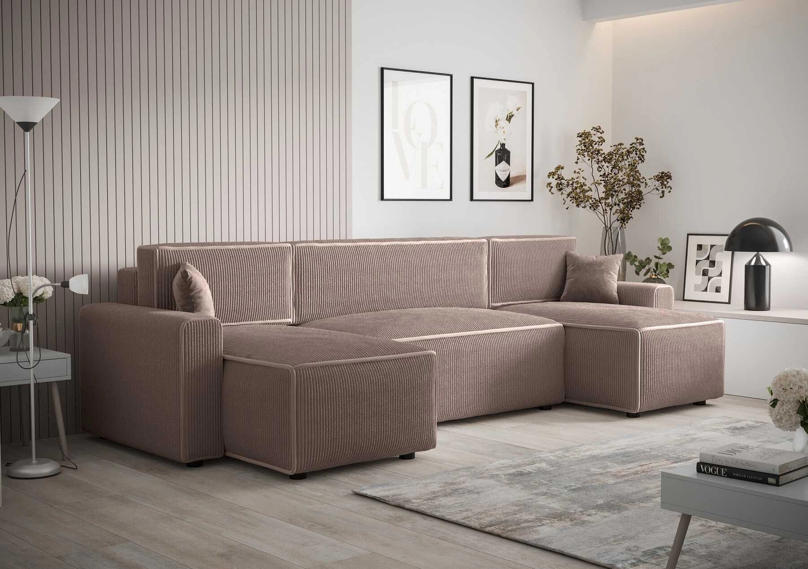 Rohová jednotka s funkcí spaní Brandon U Bis je jednoduchý kus nábytku s moderním designem, který dokonale zapadne do jakéhokoli uspořádání. Pohovka byla celá potažena látkou typu velur Poso 03. Trojrozměrné manšestrová tkanina s výrazným a silným žebrováním dodává pohovce zvláštní charakter a činí ji jedinečně krásnou. Tkanina je velmi měkká a přesto pevná a robustní. Čalounická tkanina Poso je odolnost proti oděru, a také snadno se udržuje v čistotě. Díky tomu bude rozkládací rohová pohovka Brandon U Bis vypadat esteticky a elegantně po dlouhou dobu. Rohová sedací souprava s funkcí každodenního spaní je vyrobena z vysoce kvalitních materiálů, které jsou odolné vůči vnějším vlivům, jako je čalounění nábytku a různé druhy nárazů.
