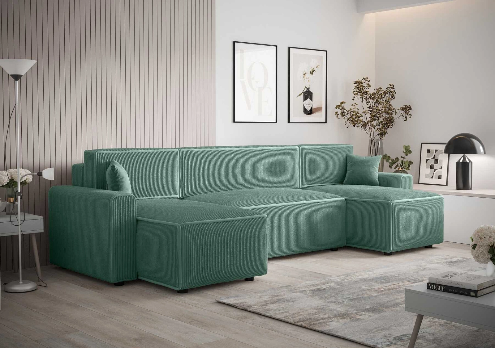 Rohová jednotka s funkcí spaní Brandon U Bis je jednoduchý kus nábytku s moderním designem, který dokonale zapadne do jakéhokoli uspořádání. Pohovka byla celá potažena látkou typu velur Poso 26. Trojrozměrné manšestrová tkanina s výrazným a silným žebrováním dodává pohovce zvláštní charakter a činí ji jedinečně krásnou. Tkanina je velmi měkká a přesto pevná a robustní. Čalounická tkanina Poso je odolnost proti oděru, a také snadno se udržuje v čistotě. Díky tomu bude rozkládací rohová pohovka Brandon U Bis vypadat esteticky a elegantně po dlouhou dobu. Rohová sedací souprava s funkcí každodenního spaní je vyrobena z vysoce kvalitních materiálů, které jsou odolné vůči vnějším vlivům, jako je čalounění nábytku a různé druhy nárazů.