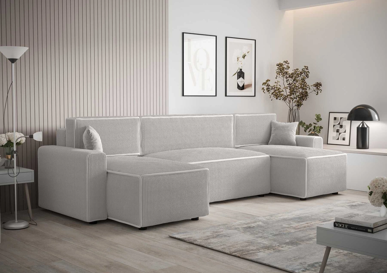 Rohová jednotka s funkcí spaní Brandon U Bis je jednoduchý kus nábytku s moderním designem, který dokonale zapadne do jakéhokoli uspořádání. Pohovka byla celá potažena látkou typu velur Poso 100. Trojrozměrné manšestrová tkanina s výrazným a silným žebrováním dodává pohovce zvláštní charakter a činí ji jedinečně krásnou. Tkanina je velmi měkká a přesto pevná a robustní. Čalounická tkanina Poso je odolnost proti oděru, a také snadno se udržuje v čistotě. Díky tomu bude rozkládací rohová pohovka Brandon U Bis vypadat esteticky a elegantně po dlouhou dobu. Rohová sedací souprava s funkcí každodenního spaní je vyrobena z vysoce kvalitních materiálů, které jsou odolné vůči vnějším vlivům, jako je čalounění nábytku a různé druhy nárazů.