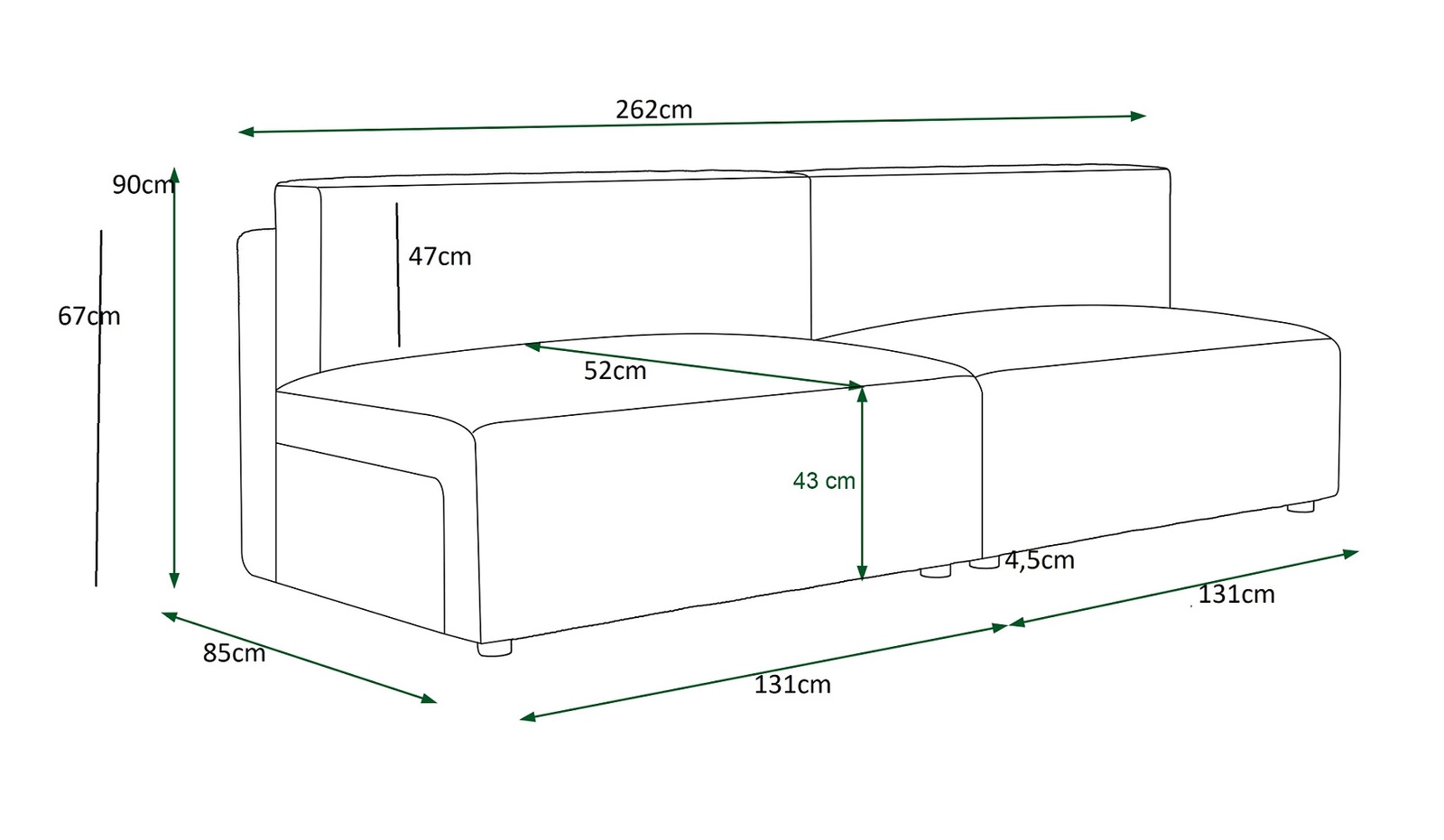 Rozložení celé spací plochy je velmi snadné a nevyžaduje velkou sílu. To vše díky mechanismu DL, který se vyznačuje jednoduchou konstrukcí a dlouhou životností. Plocha pohovky na spaní je 262x130 cm. Nábytek je vybaven kulatými nízkými nožkami z plastu. Tato funkční pohovka se hodí do jakéhokoli typu místnosti! Zaručuje pohodlné a bezproblémové používání a trvanlivost celého nábytku po mnoho let používání. Ideální jako pohovka do obývacího pokoje, pohovka s funkcí spaní a do jakéhokoli interiéru zařízeného ve vašem oblíbeném stylu!