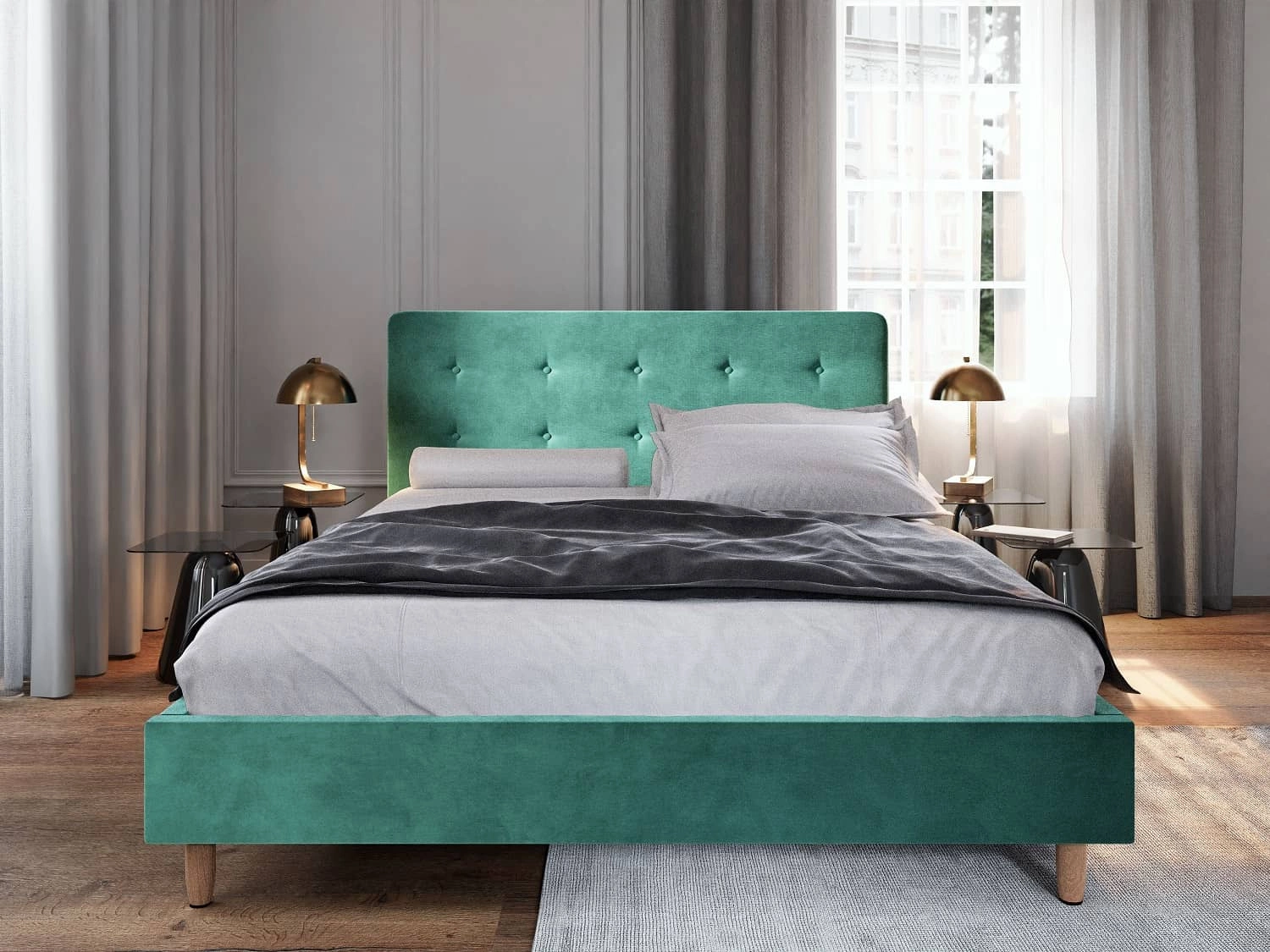 Čalouněná postel Noiro 140x200 v zelené barvě je stylový kus nábytku, který se skvěle hodí do každé ložnice.