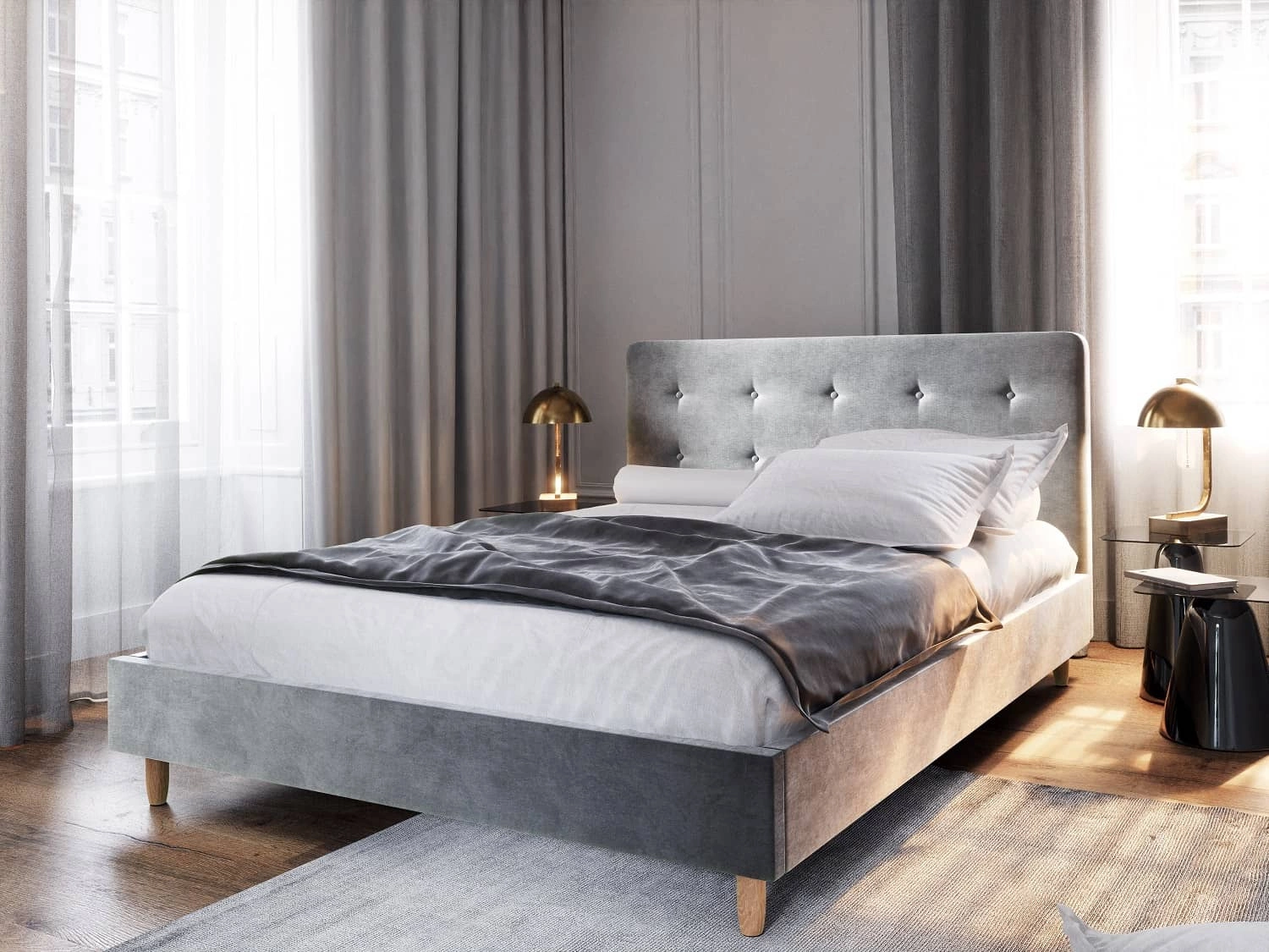 Čalouněná postel Noiro 160x200 ve světle šedé barvě je stylový kus nábytku, který se skvěle hodí do každé ložnice.