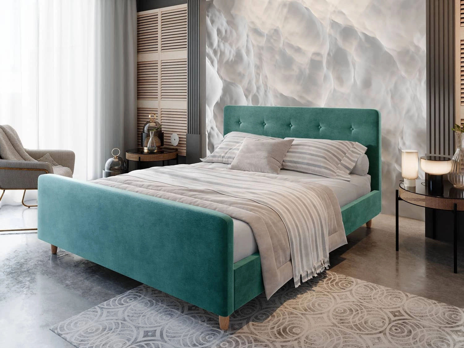 Čalouněná postel Isara 160x200 v zelené barvě je stylový kus nábytku, který dokonale zapadne do každé ložnice.