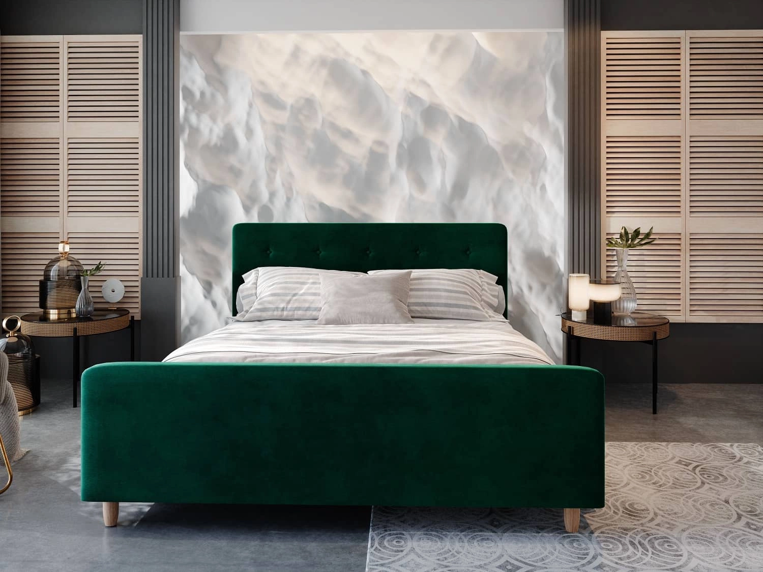 Čalouněná postel Isara 180x200 v lahvově zelené barvě je stylový kus nábytku, který se skvěle hodí do každé ložnice.