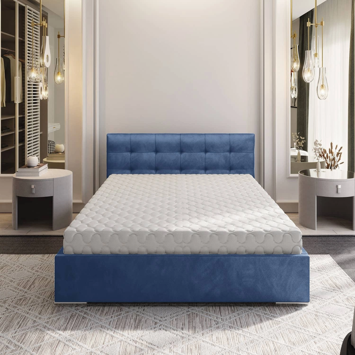 Čalouněná postel Montigo 140x200 v modré barvě je ideálním řešením pro ložnice zařízené v moderním, skandinávském i klasickém stylu.