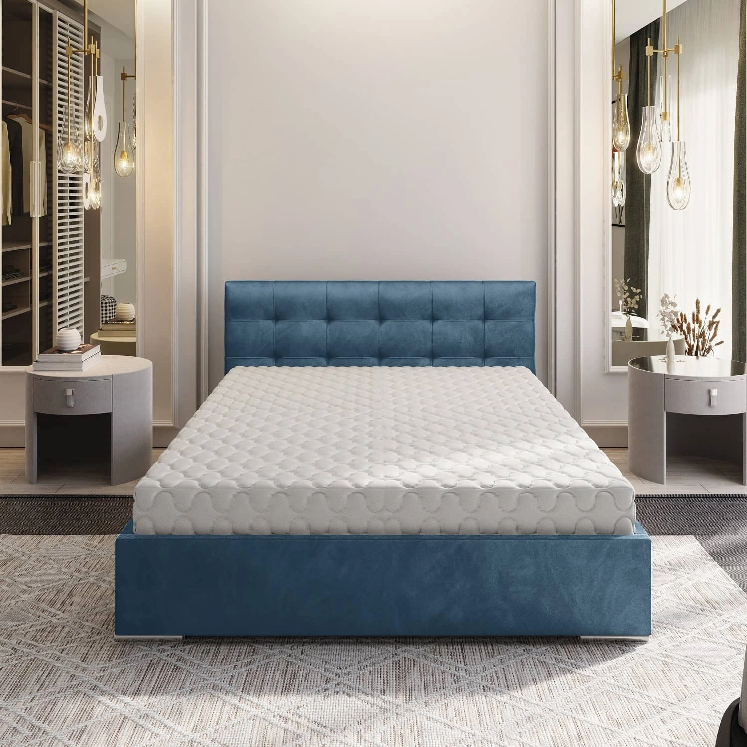 Standardní vybavení lůžka zahrnuje stabilní kovový rám s pružnými lamelami. Zhutnost bukových lamel zajišťuje správnou oporu a používání matrace. Použité suroviny a robustní konstrukce rámečky, umožňují dosažení naprosté spokojenosti při spánku na matraci dle vlastního výběru. Rám matrace je vybaven plynovými lahvemi pro snadné zvedání.