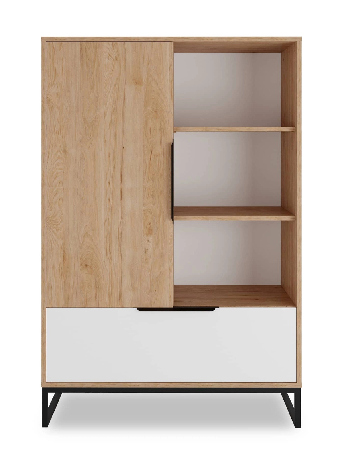 • Knihovna Imola má jednoduchý a elegantní design, který se hodí k současným trendům v interiéru. Dubová barva v kombinaci s kovovým podstavcem podtrhuje moderní styl. Jemné úchyty na okrajích upoutají pozornost.