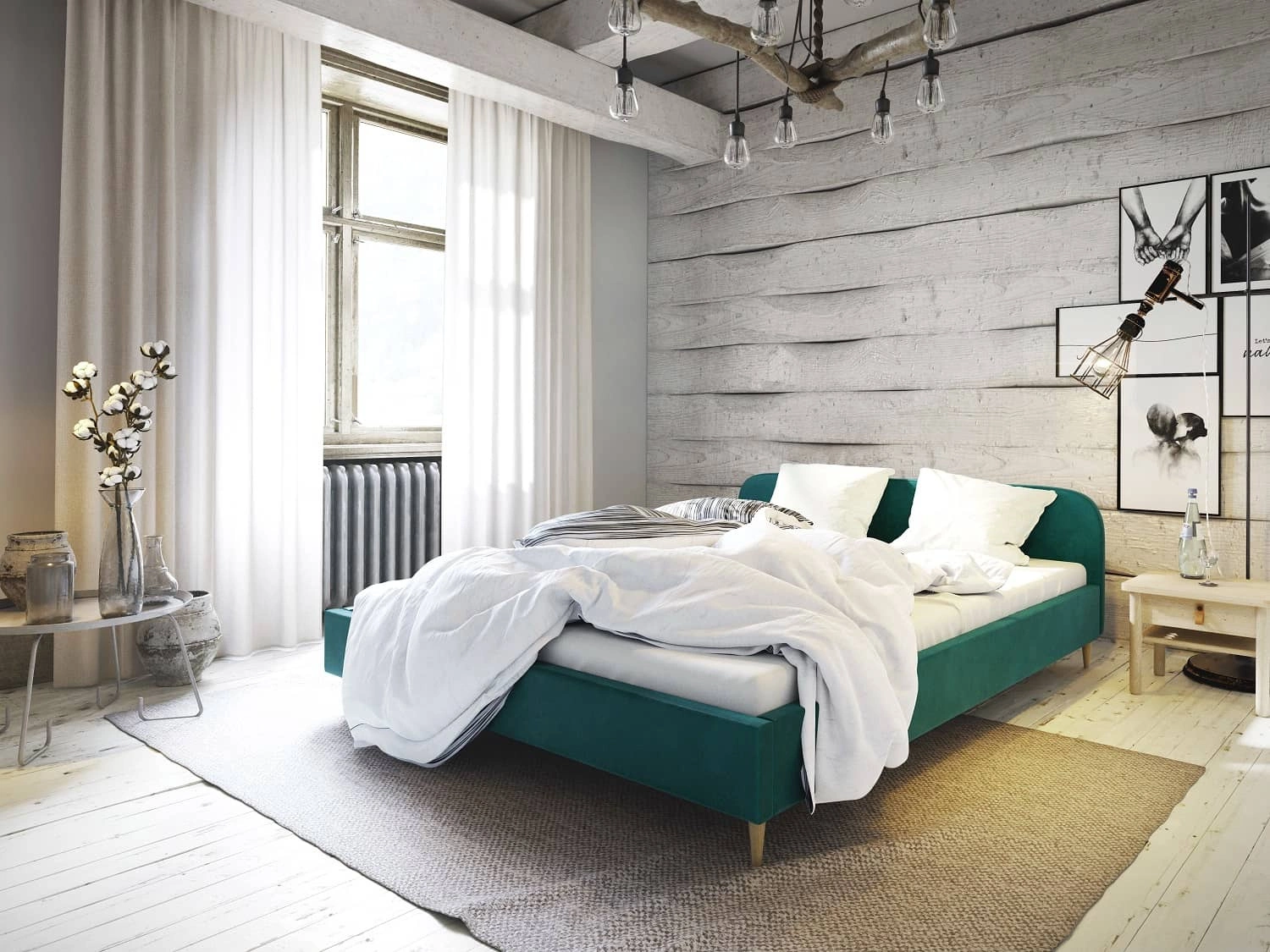 Čalouněná postel Ivrea 140x200 v tyrkysové barvě je ideálním řešením pro ložnice zařízené v moderním, skandinávském i klasickém stylu.