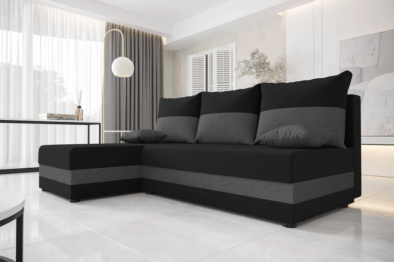 Rohová sedací souprava s funkcí spaní Bowers černá / grafitová levá rohová sedací souprava s úložným prostorem na lůžkoviny záruka nejvyššího komfortu