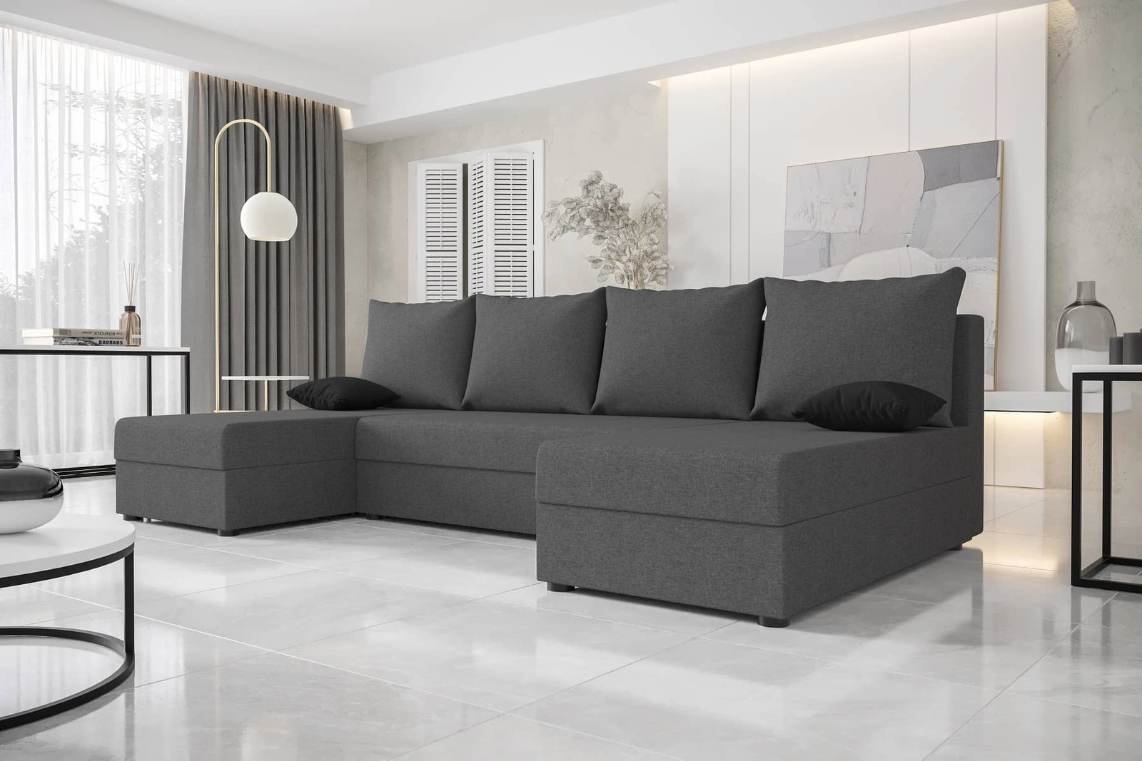 Rohová pohovka Bowers U v grafitové barvě je ideálním řešením pro obývací pokoj, které se hodí do každého interiéru.