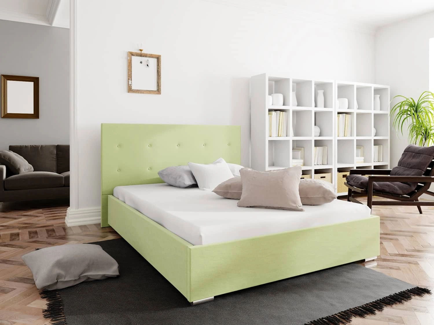 Čalouněná postel Bejar 160x200 v mátové barvě je ideálním řešením pro ložnice zařízené v moderním i klasickém stylu.
