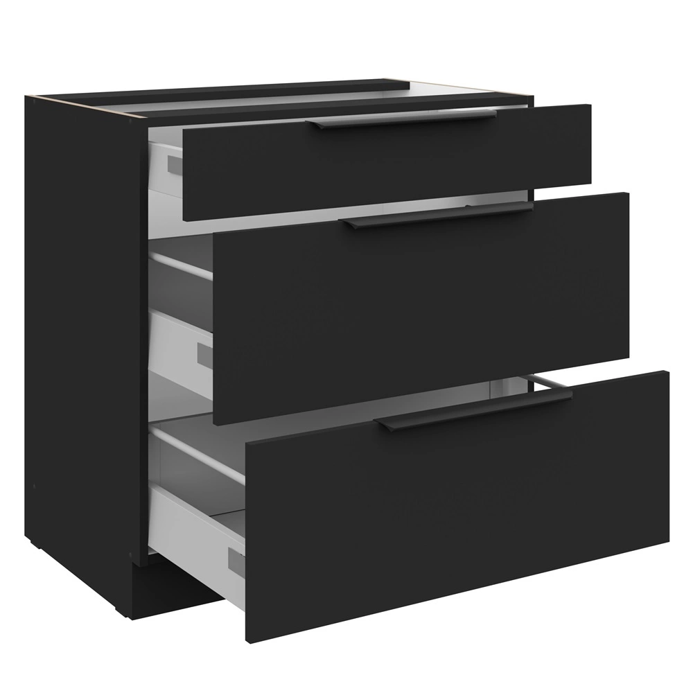 Kuchyňská skříňka se zásuvkami 80 cm černá patří do kategorie modulárního kuchyňského nábytku, ze kterého si můžete vytvořit libovolnou sestavu.