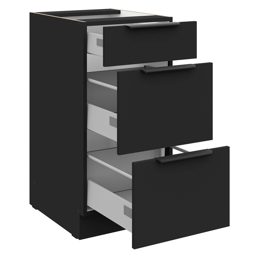 Černá kuchyňská skříňka je vyrobena z 3 zásuvky vyrobený s Premium Box.