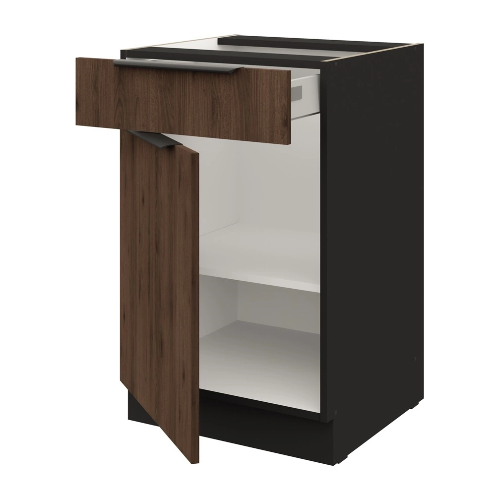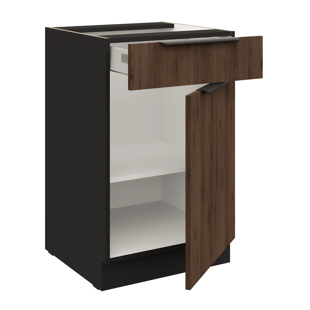 Kuchyňská skříňka Brianza se zásuvkou 50 cm v barvě ořech okapi/černá patří do kategorie modulárního kuchyňského nábytku, ze kterého lze vytvořit libovolné sestavy.