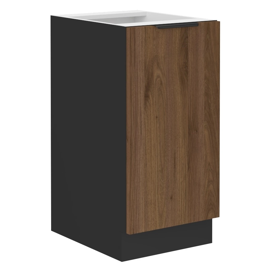 Stojící kuchyňská skříňka Brianza 40 cm v barvě ořech okapi/černá patří do kategorie modulárního kuchyňského nábytku, ze kterého lze vytvořit libovolnou kombinaci.