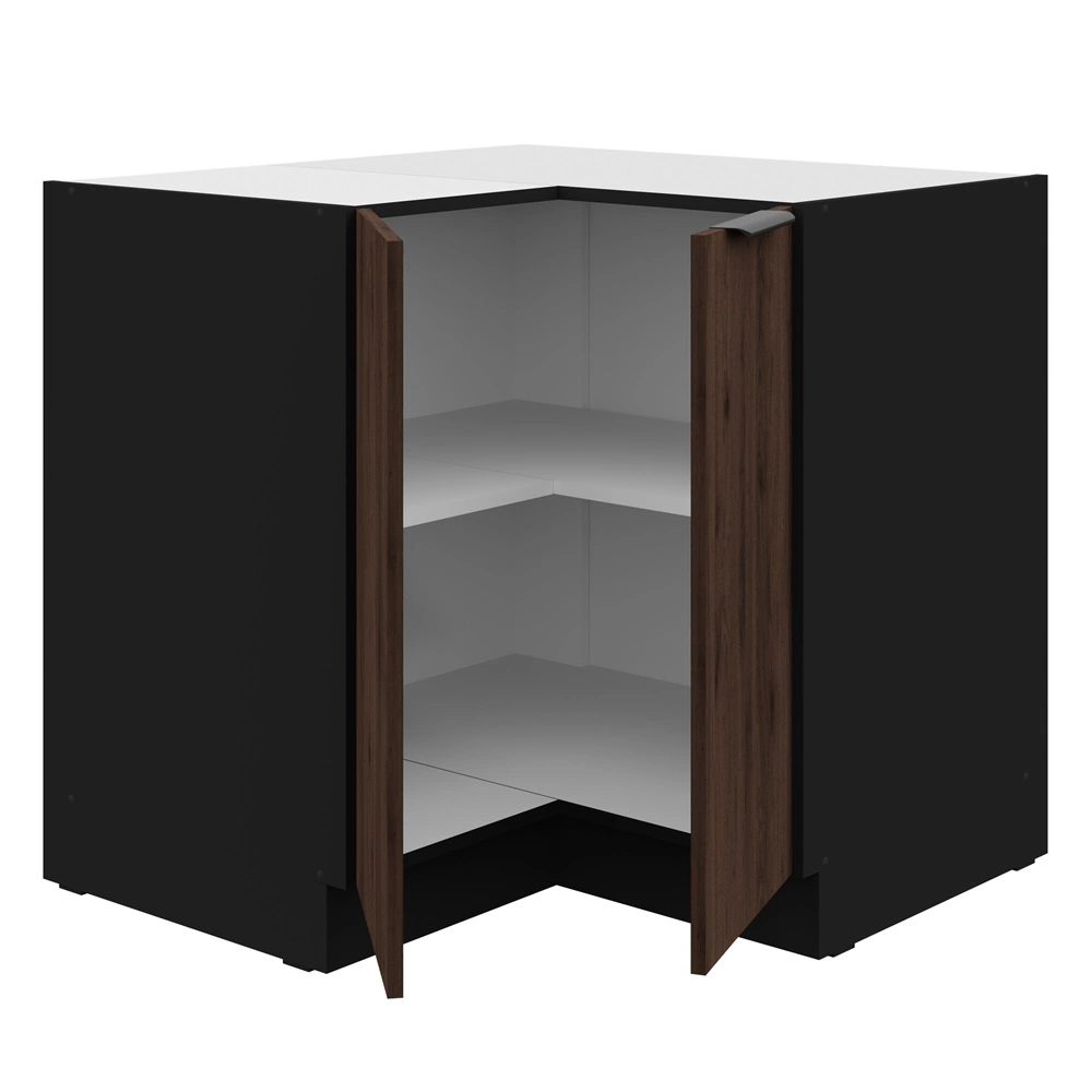 Stojící rohová kuchyňská skříňka Brianza v barvě ořech okapi/černá patří do kategorie modulárního kuchyňského nábytku, ze kterého lze vytvořit libovolnou kombinaci.