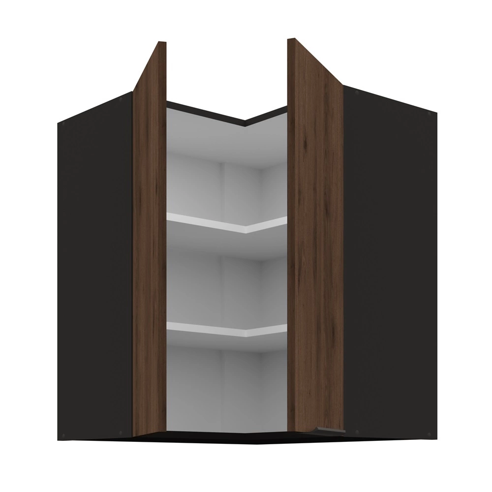 Rohová kuchyňská skříňka Brianza v barvě ořech okapi/černá patří do kategorie modulárního kuchyňského nábytku, ze kterého lze vytvořit libovolnou kombinaci.
