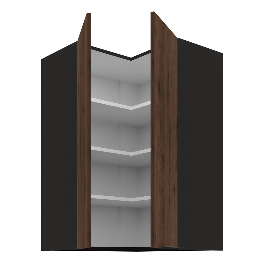 Rohová kuchyňská skříňka Brianza v barvě ořech okapi/černá patří do kategorie modulárního kuchyňského nábytku, ze kterého lze vytvořit libovolnou kombinaci.