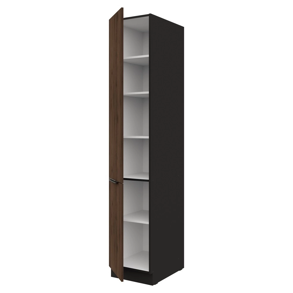Kuchyňský stolek Brianza s policemi 40 cm v barvě ořech okapi/černá patří do kategorie modulárního kuchyňského nábytku, ze kterého lze vytvořit libovolnou sestavu.