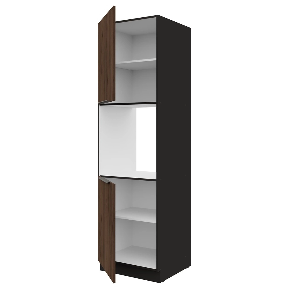 Rohová kuchyňská sestava 310x250 cm Brianza v barvě ořech okapi / černá je návrh hotové sestavy kuchyňského nábytku, která se skvěle hodí do moderních interiérů.