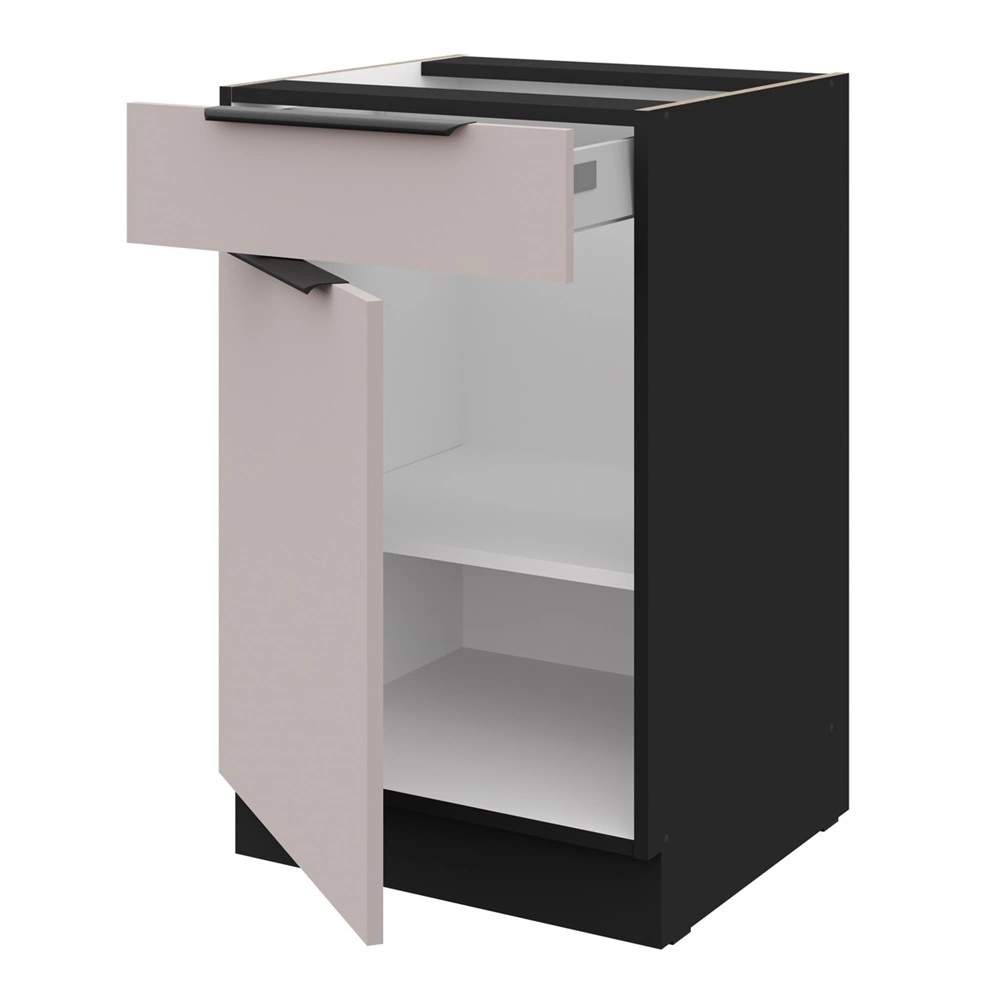 Kuchyňská skříňka Tarraco se zásuvkou 50 cm v béžové/černé barvě patří do kategorie modulárního kuchyňského nábytku, ze kterého lze vytvořit libovolné sestavy.