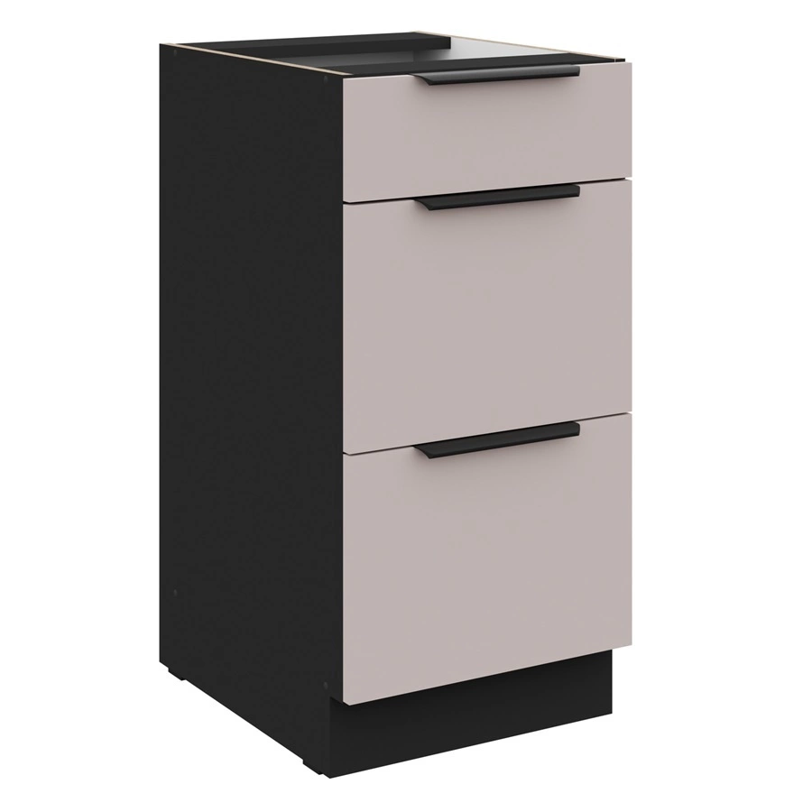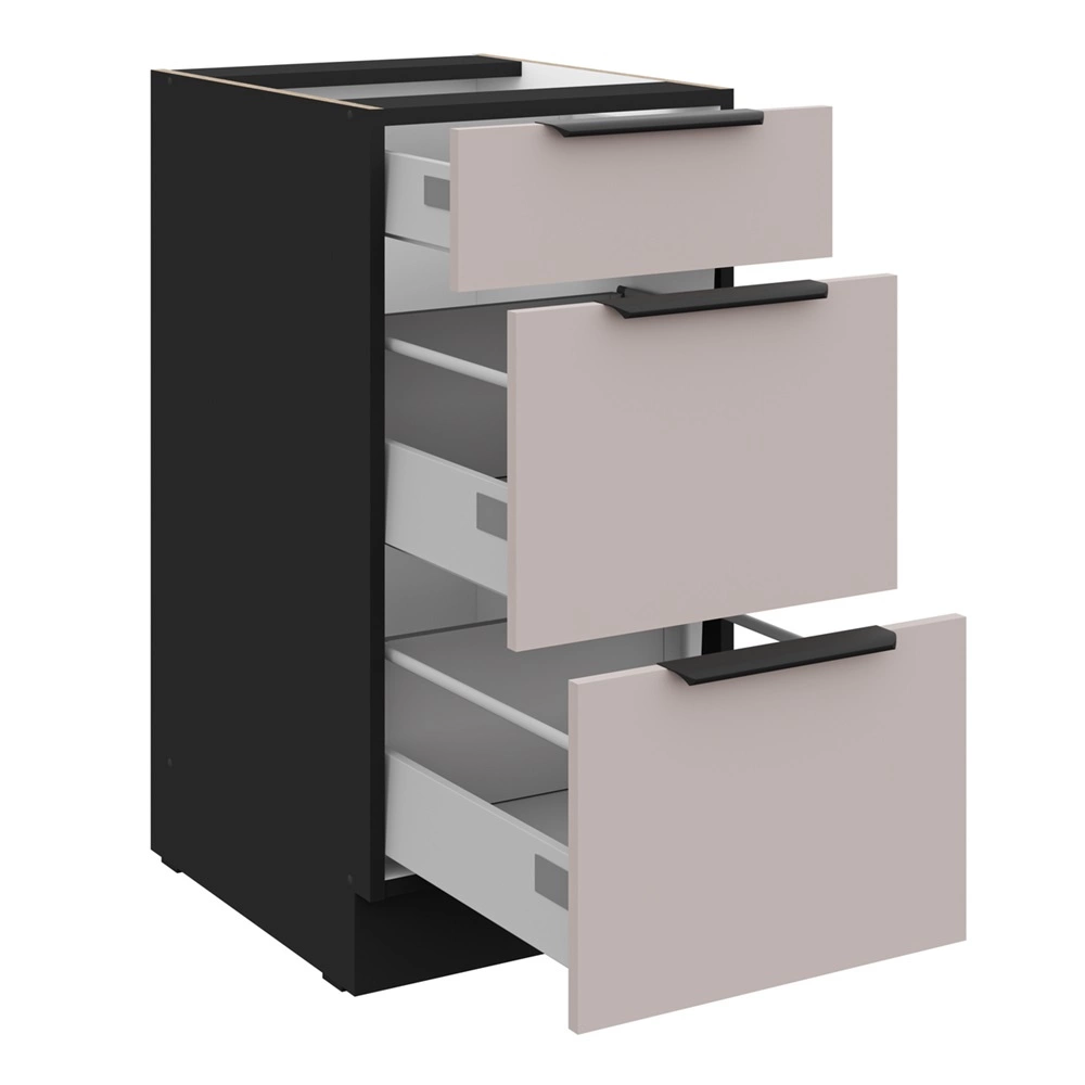 Kuchyňská skříňka Tarraco se zásuvkami 40 cm v béžové/černé barvě patří do kategorie modulárního kuchyňského nábytku, ze kterého lze vytvořit libovolné sestavy.