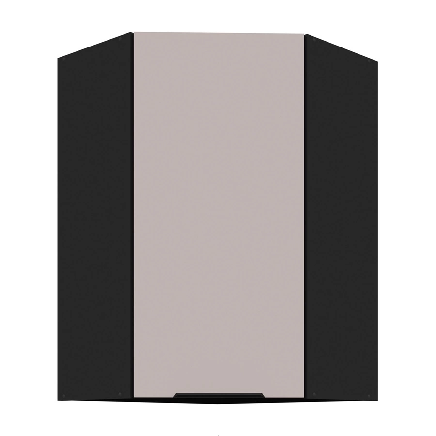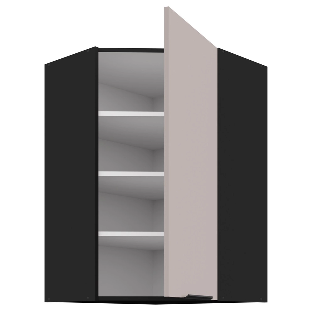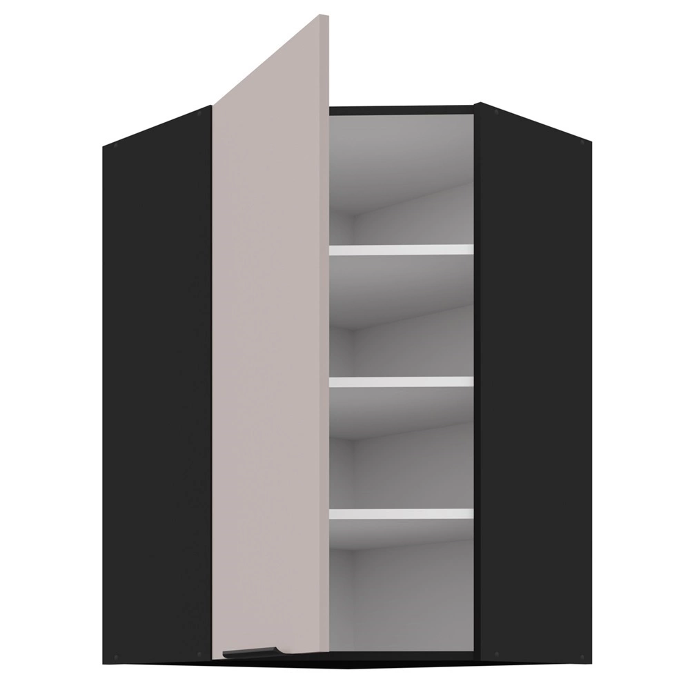 Rohová závěsná kuchyňská skříňka Tarraco v béžové/černé barvě patří do kategorie modulárního kuchyňského nábytku, ze kterého lze vytvořit libovolné sestavy.
