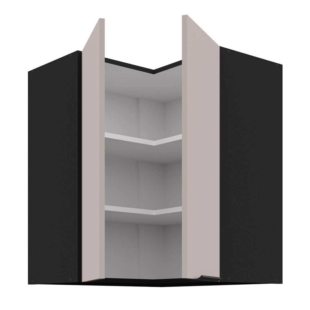 Rohová závěsná kuchyňská skříňka Tarraco v béžové/černé barvě patří do kategorie modulárního kuchyňského nábytku, ze kterého lze vytvořit libovolné sestavy.