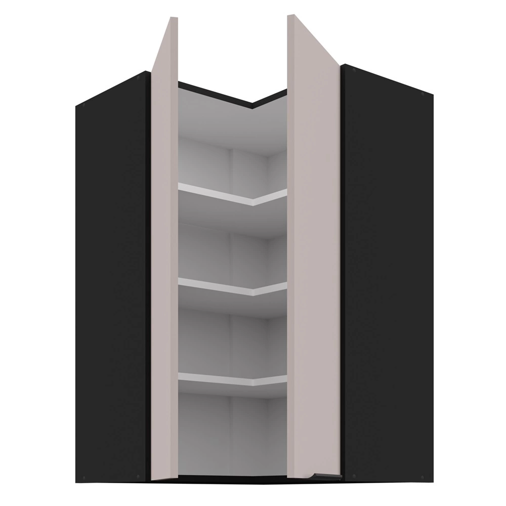 Rohová závěsná kuchyňská skříňka Tarraco v béžové/černé barvě patří do kategorie modulárního kuchyňského nábytku, ze kterého lze vytvořit libovolné sestavy.