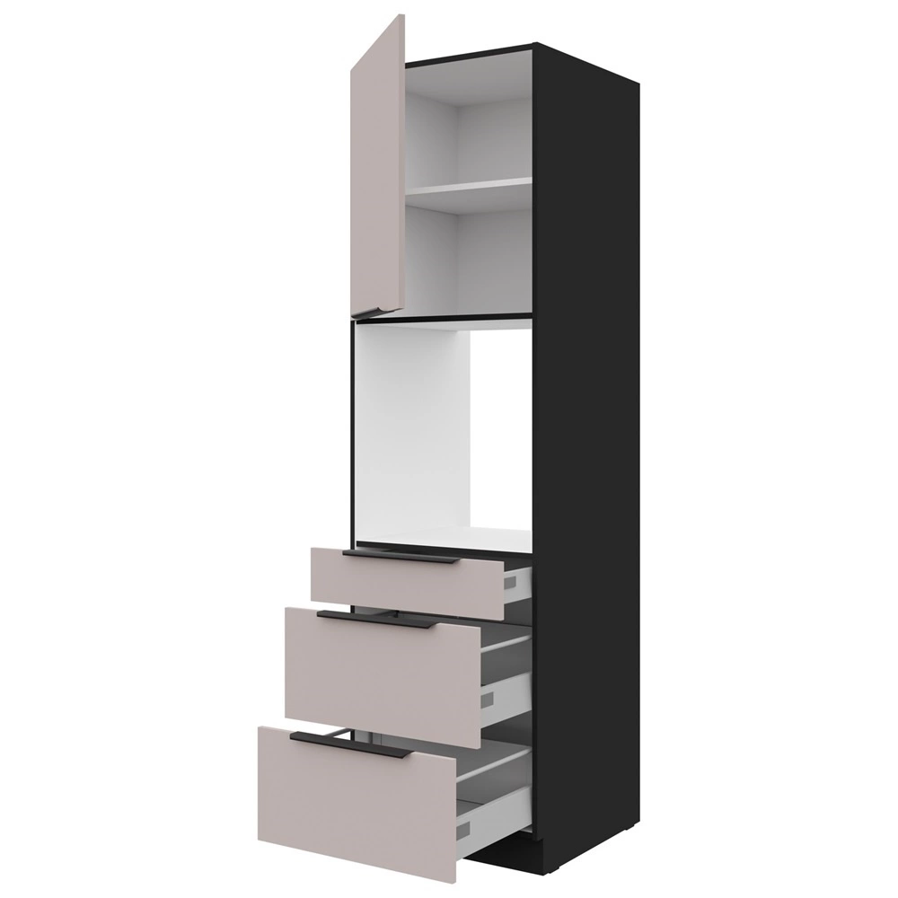 Stojan na troubu Tarraco 60 cm v béžové/černé barvě patří do kategorie modulárního kuchyňského nábytku, ze kterého lze vytvořit libovolnou sestavu.