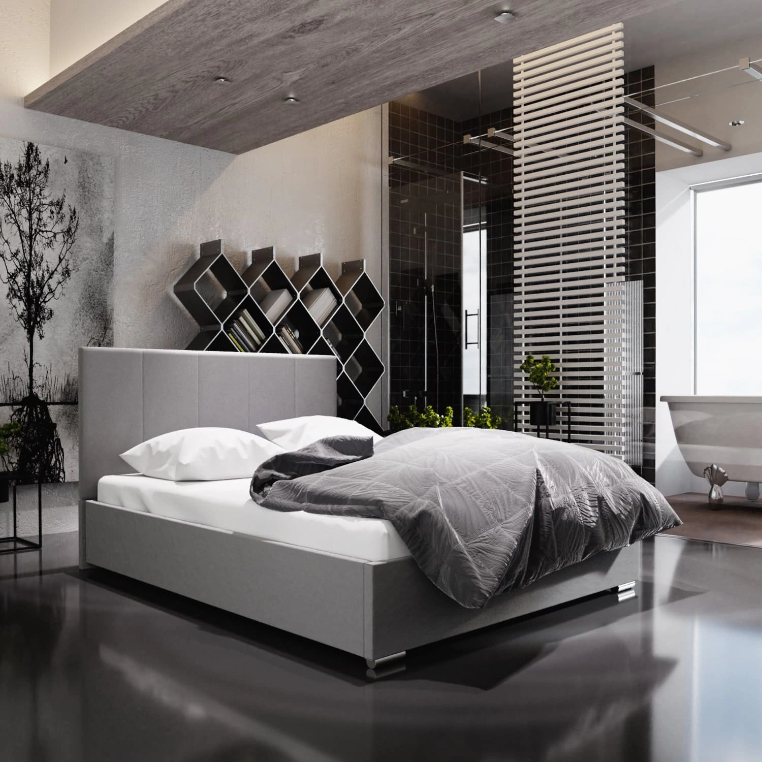 Čalouněná postel Lugo 160x200 šedá s čelem v moderním stylu ideální do ložnice