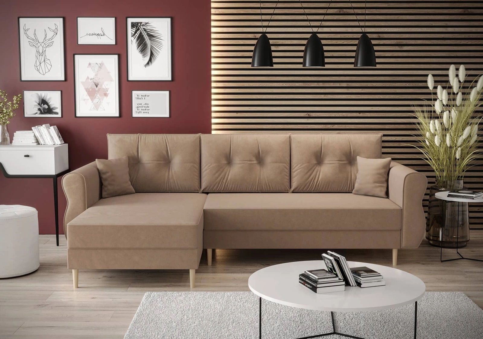 Rohová pohovka s funkcí spaní Wilkins světle hnědá levá strana stylový a moderní design, který se hodí do každého interiéru