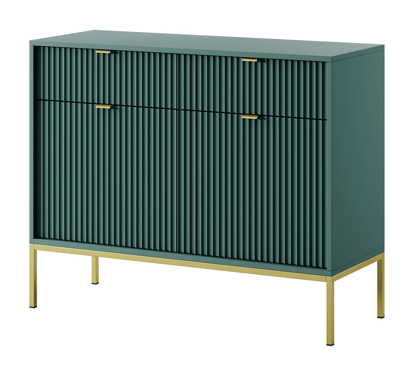 Komoda Lovro 104 cm pastelově zelená moderní design potěší milovníky výrazných interiérů komoda obohacená zlatými doplňky