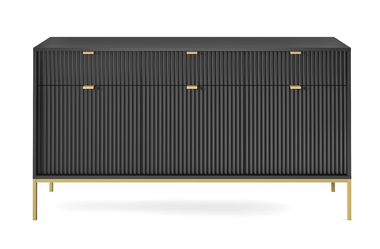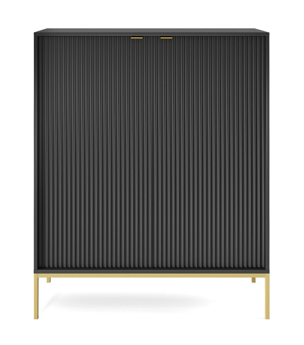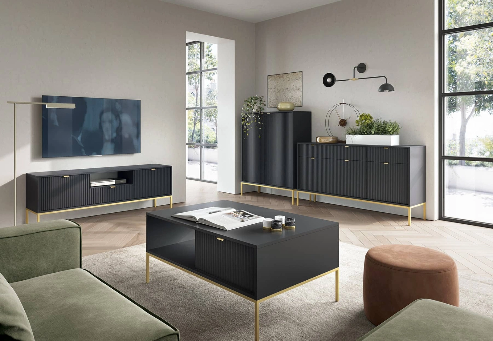 Nábytková sestava Lovro černá moderní designová nástěnná skříňka obohacená o zlaté kovové doplňky nábytek do obývacího pokoje nebo obývacího pokoje