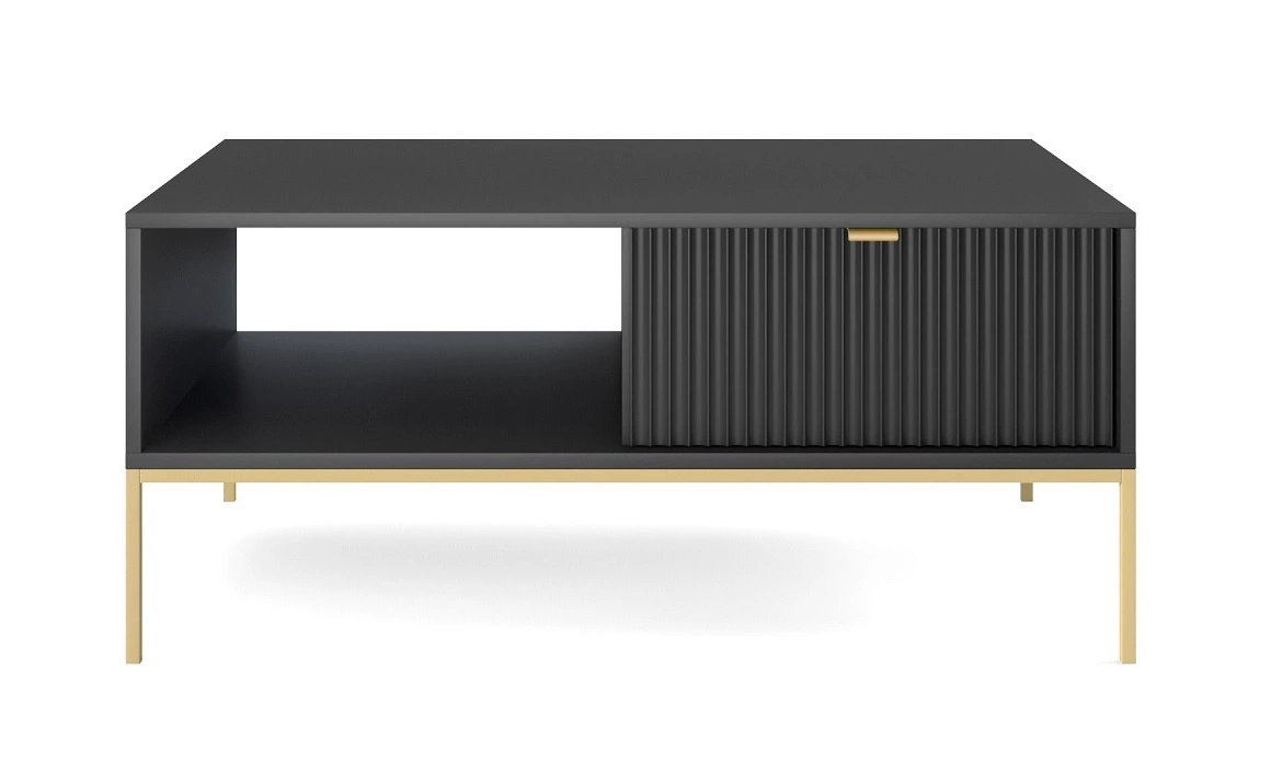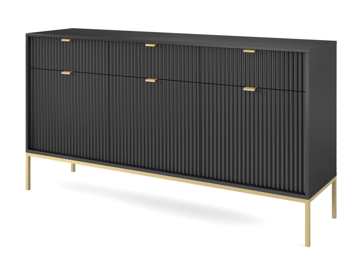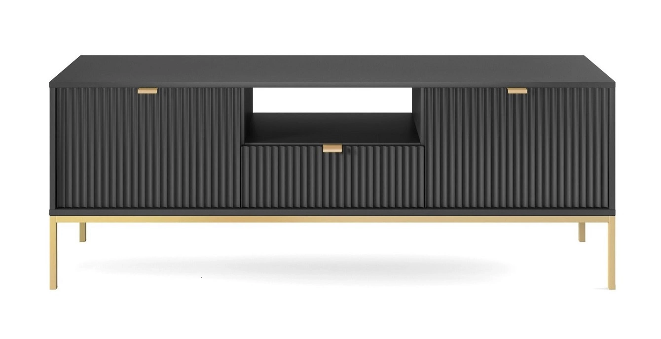 Nábytková sestava Lovro černá moderní designová nástěnná skříňka obohacená o zlaté kovové doplňky nábytek do obývacího pokoje nebo obývacího pokoje