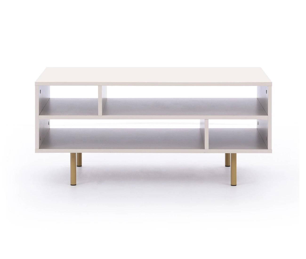 Konferenční stolek Sula je nádhernou kombinací geometrických tvarů a jemné barvy. Béžová barvar pevné látky dokonale sladěný s vysoké nohy ve zlatobéžové barvě který dodává stolku vizuální lehkost a funkčnost. Otevřené police pod pracovní deskou poskytnout další prostor. Jedinečný design konferenčního stolku se uplatní i v interiéru nejnáročnější interiér.