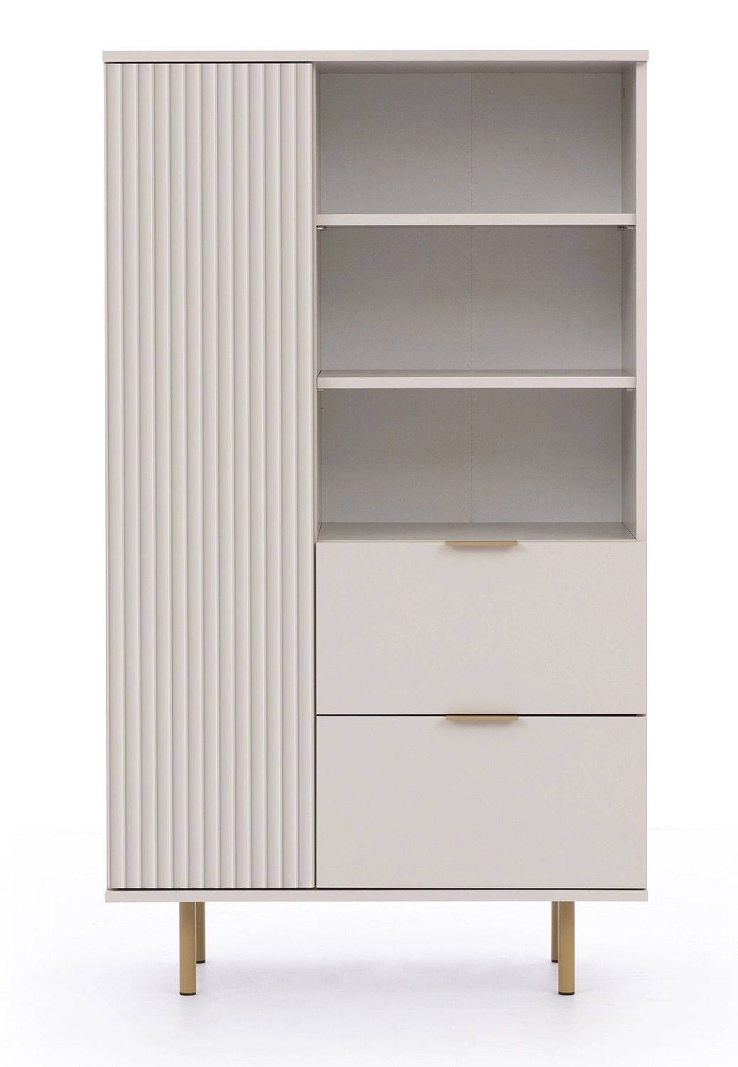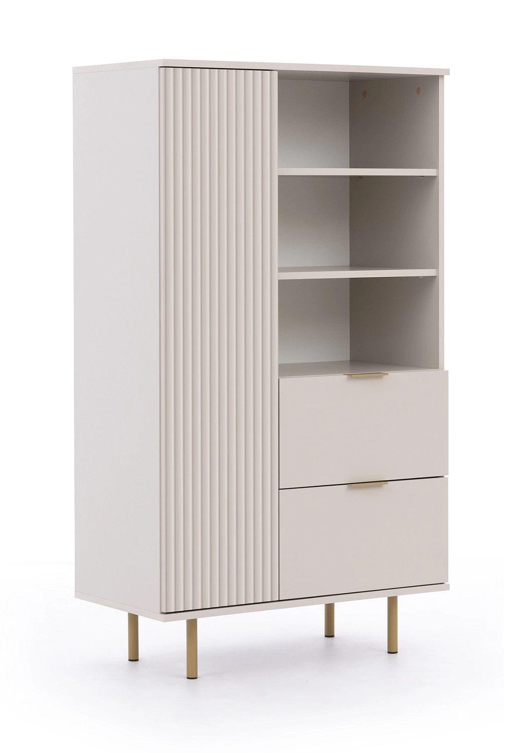 Vysoká komoda Sula 80 cm béžová elegantní a funkční komoda s drážkovaným čelem obohaceným kovovými úchyty