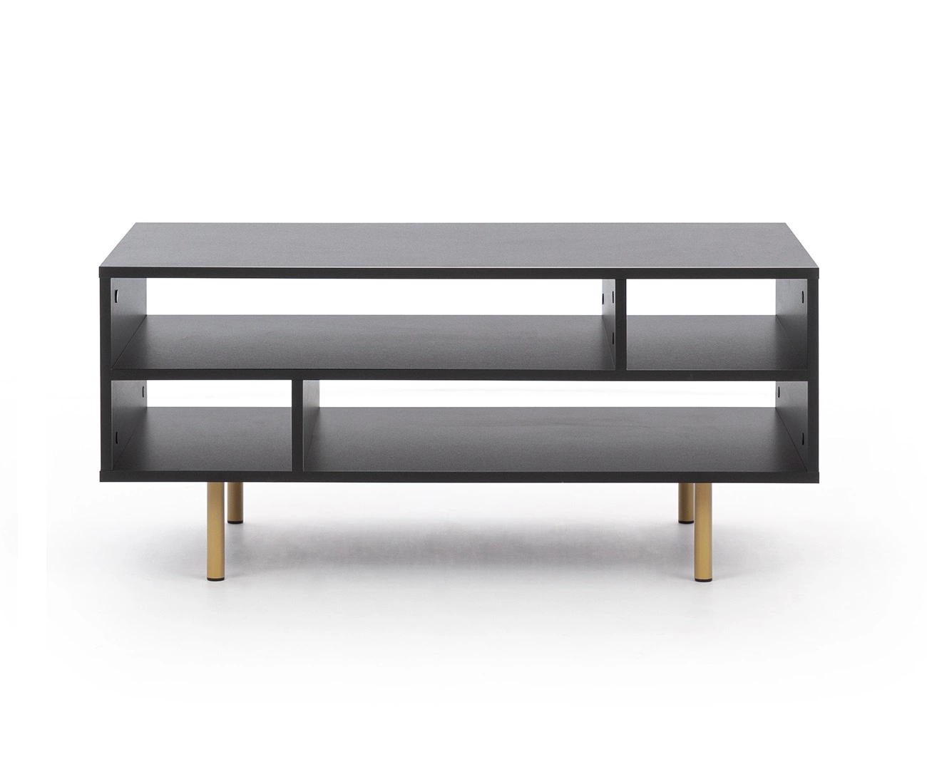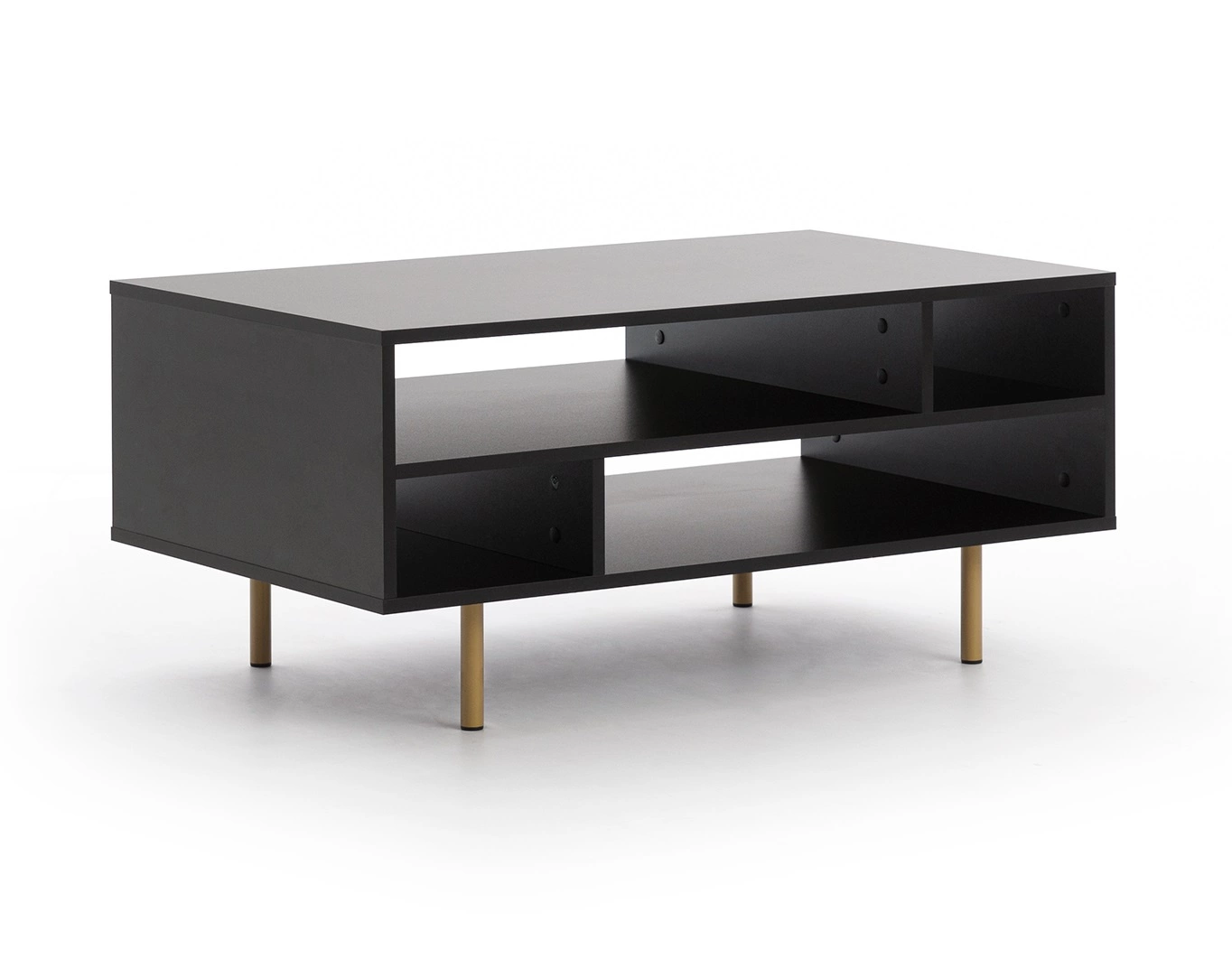Konferenční stolek Sula je nádhernou kombinací geometrických tvarů a výrazné barvy. Černá barvar pevné látky dokonale sladěný s vysoké nohy ve zlatobéžové barvě který dodává stolku vizuální lehkost a funkčnost. Otevřené police pod pracovní deskou poskytnout další prostor. Jedinečný design konferenčního stolku se uplatní i v interiéru nejnáročnější interiér.