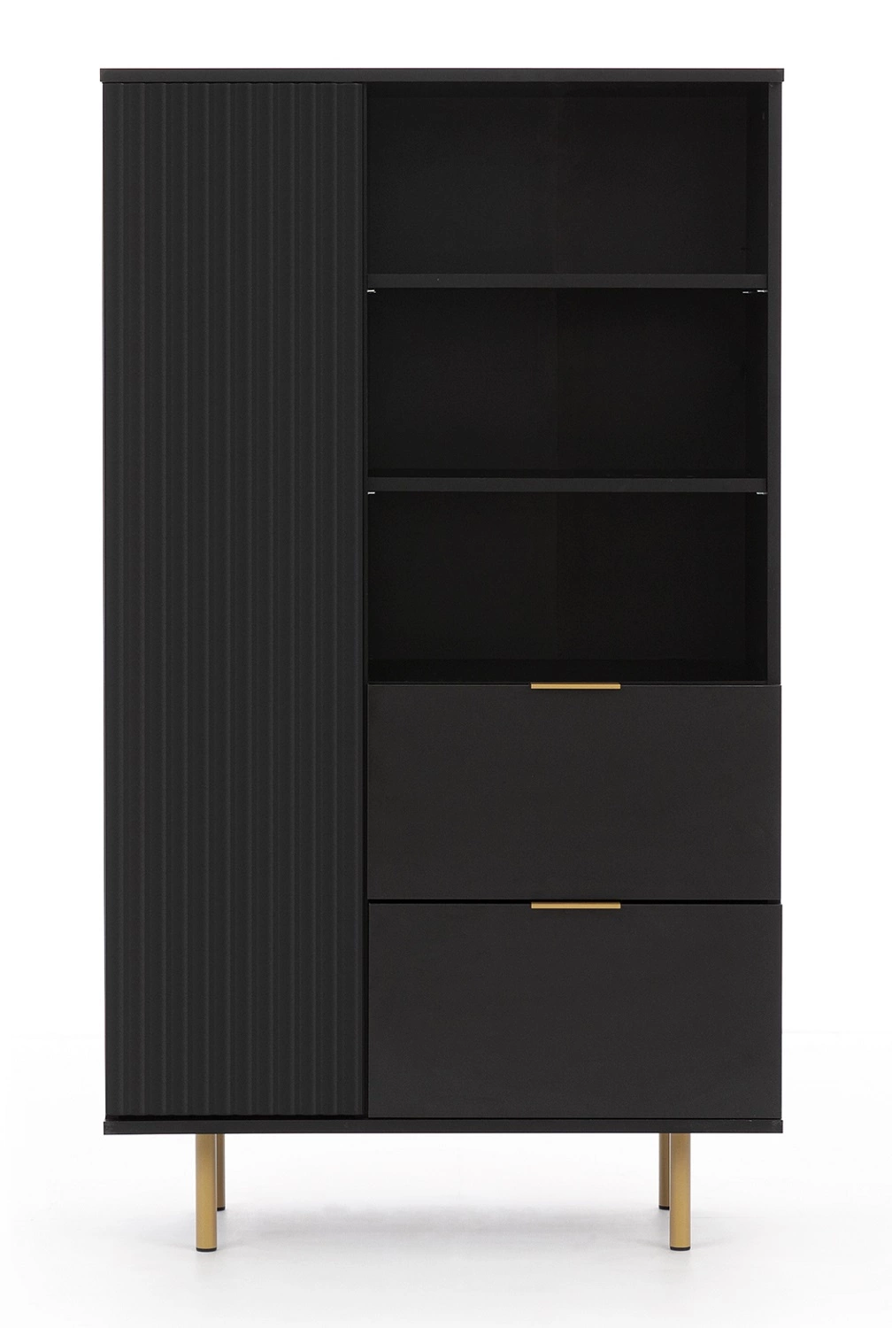 Vysoká komoda Sula 80 cm černé elegantní a funkční komoda s drážkovaným čelem obohaceným kovovými úchyty