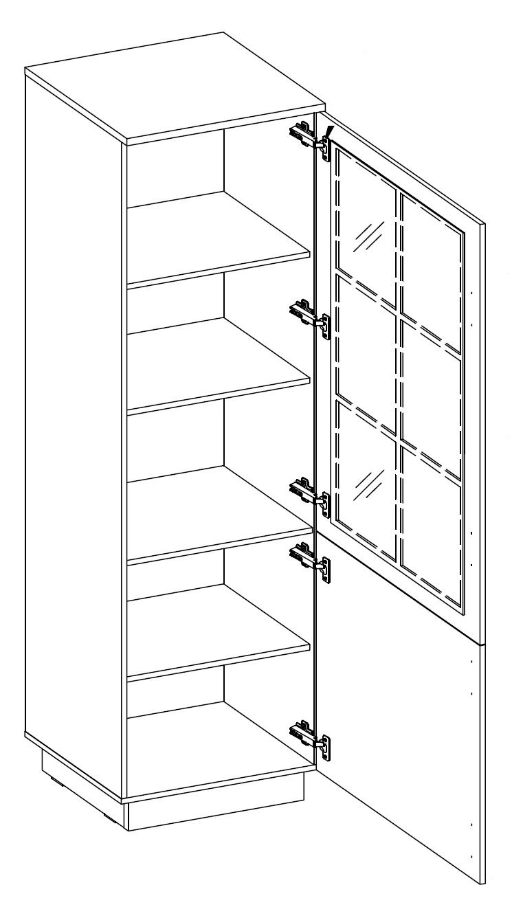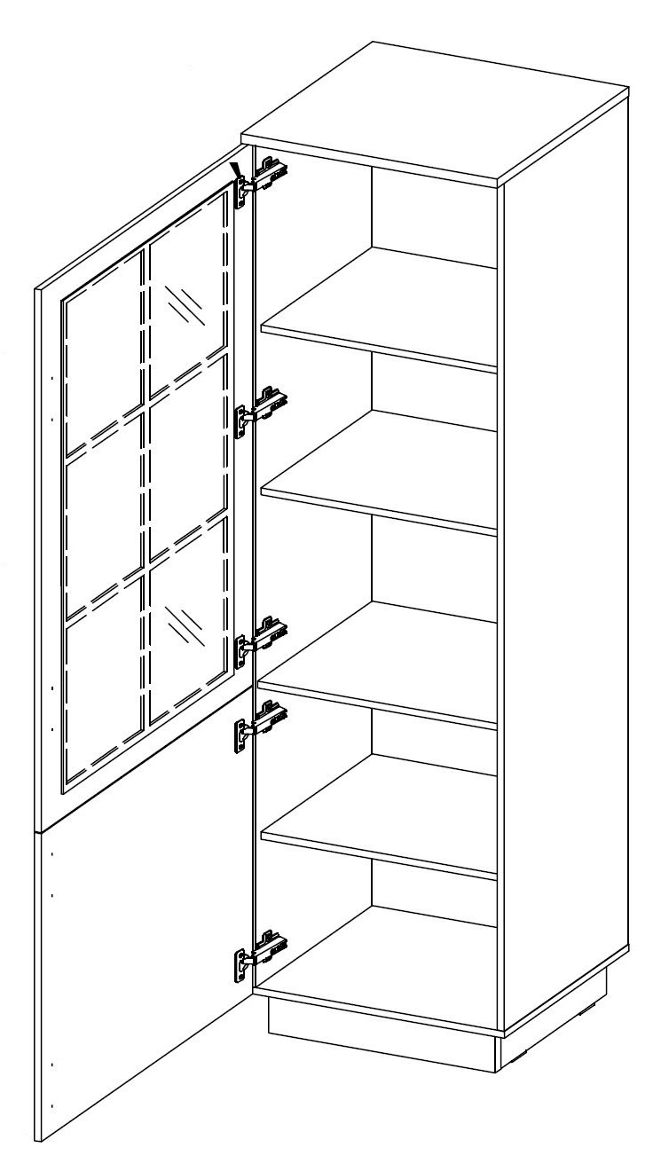 Frézovaná čela byla vyrobena z mDF. Tělo vyrobené z vysoce kvalitní laminovaná deska o tloušťce 16 mm, který je odolný vůči vnějším vlivům, jako jsou otlaky, nárazy a nešťastné škrábance. Vitrína je vyrobena z 2 dveře. Dvířka displeje jsou univerzální a lze je namontovat za vpravo nebo po vlevo webové stránky. Díky své všestrannost a funkce skleněné vitríny z kolekce Style se skvěle hodí jako vitrína do obývacího pokoje, vitrína do jídelny nebo vitrína do pracovny knihy.