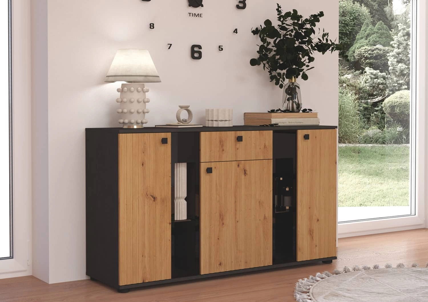 Komoda Senja se zásuvkou v barvě matera / dub artisan je stylovým a funkčním řešením pro obývací pokoj nebo pokoj pro mládež.