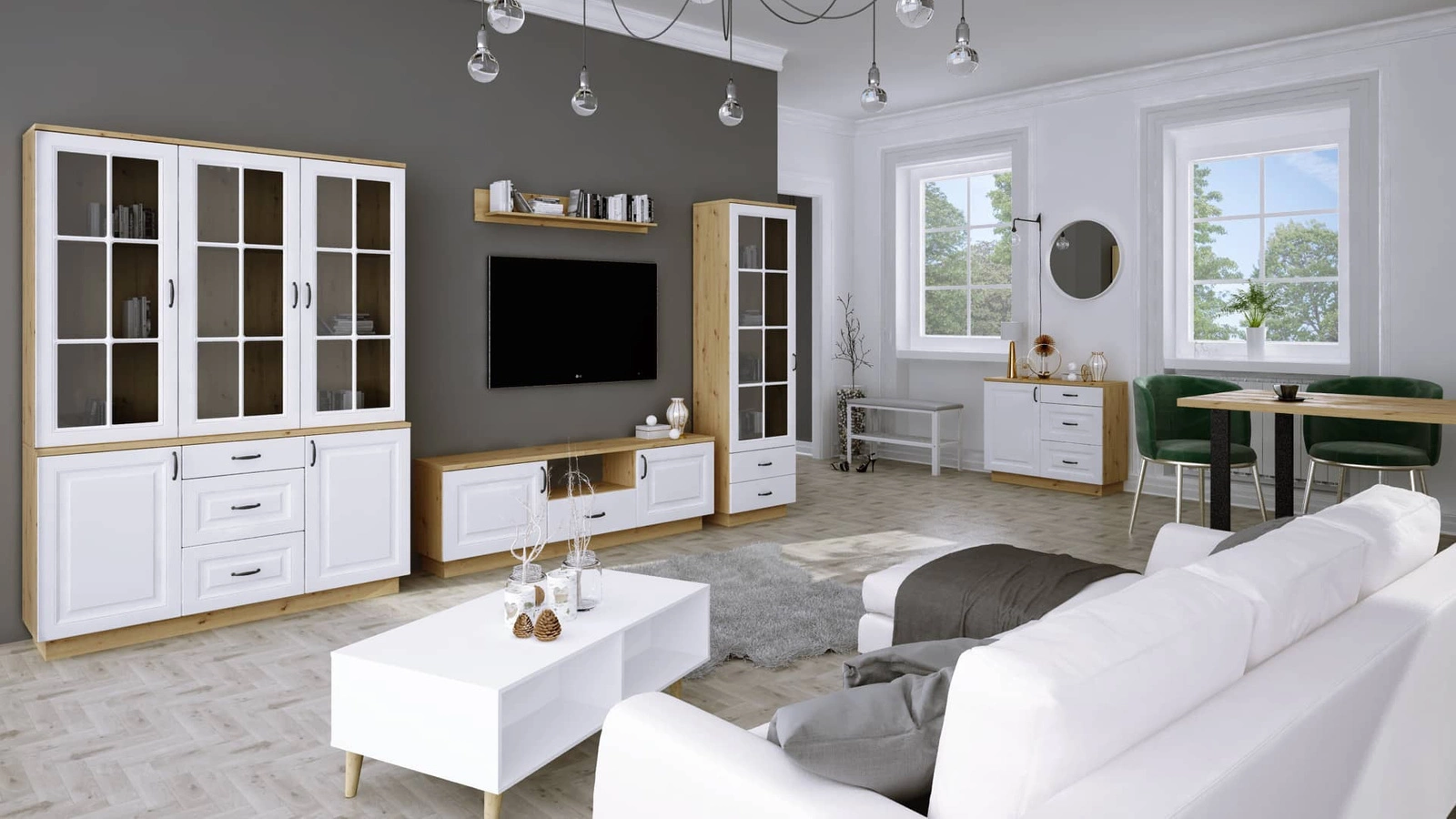 Scandi komoda potěší milovníky osobitých interiérů. Přítomnost komody se stane stylovou tečkou na závěr místnosti a dodá jí charakter a jedinečnou atmosféru. Expresivní kombinace dubová skříň s bílými čely dokončeno stylové frézování celý vzhled je velmi elegantní. Čela komody doplňují kovové úchyty v černé barvě, které kromě své primární funkce dodávají nábytku jedinečný styl. Komoda si úspěšně najde cestu do interiérů v klasické, skandinávské a moderní styly.
