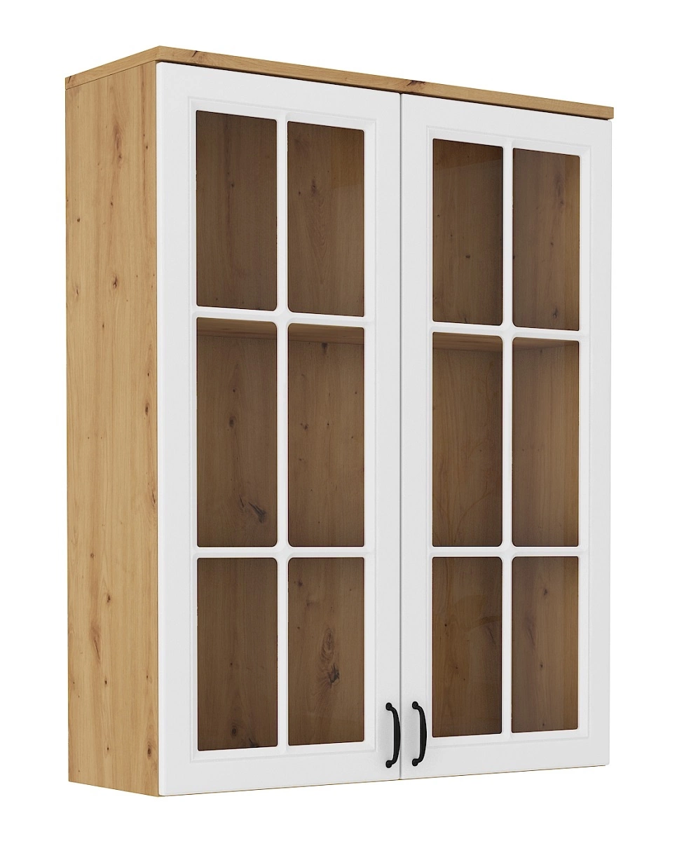 Scandi 100 cm řemeslný dub / bílá klasický design bezpečnostní tvrzené sklo stylová frézovaná čela kovové úchyty