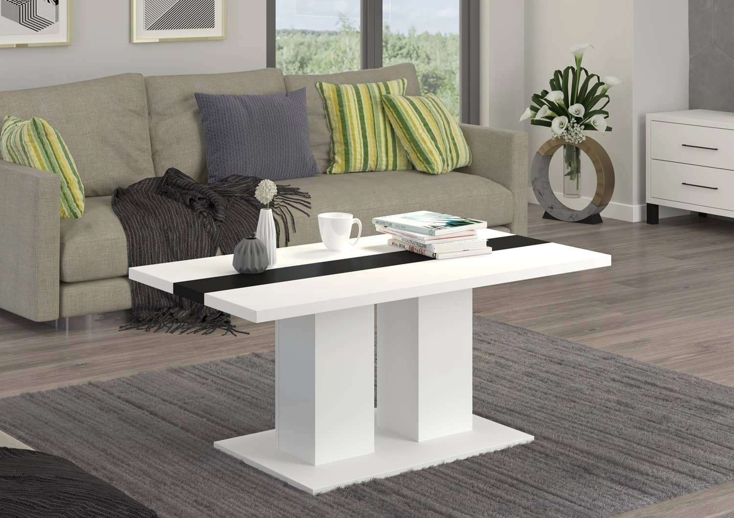 Konferenční stolek Salem v bílé barvě s černou vložkou je stylový kus nábytku, který se skvěle hodí do každého obývacího pokoje nebo zasedací místnosti.